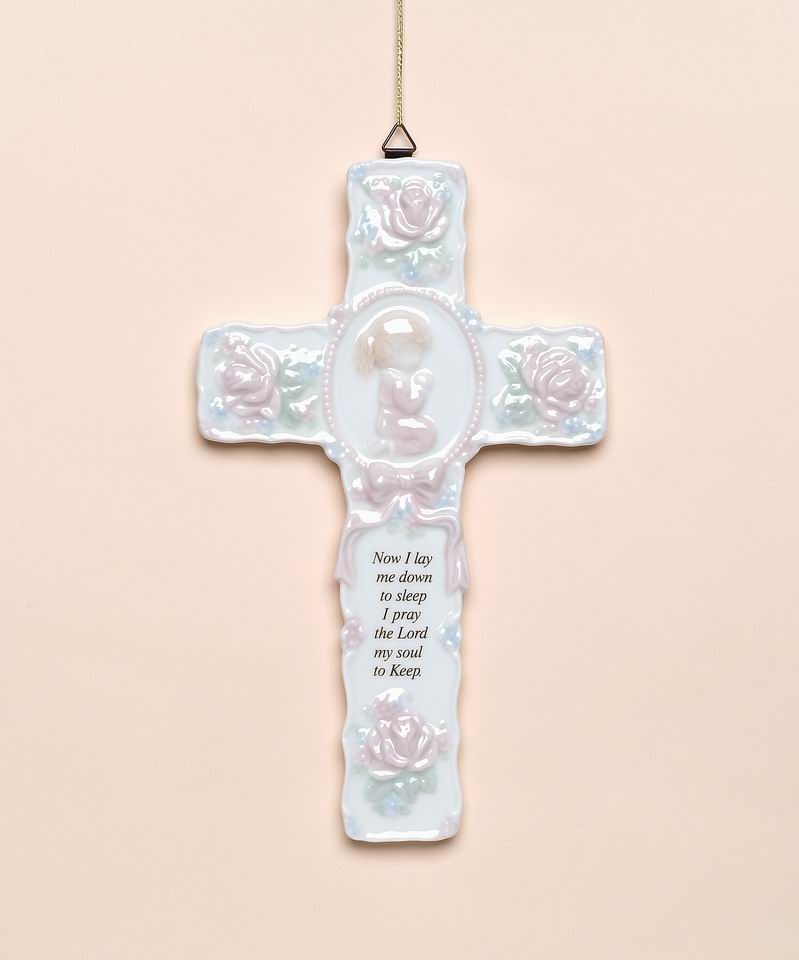 Ceramic Cross with Praying Girl Wall Decor, Religious Décor, Religious Gift, Church Décor, Baptism Gift