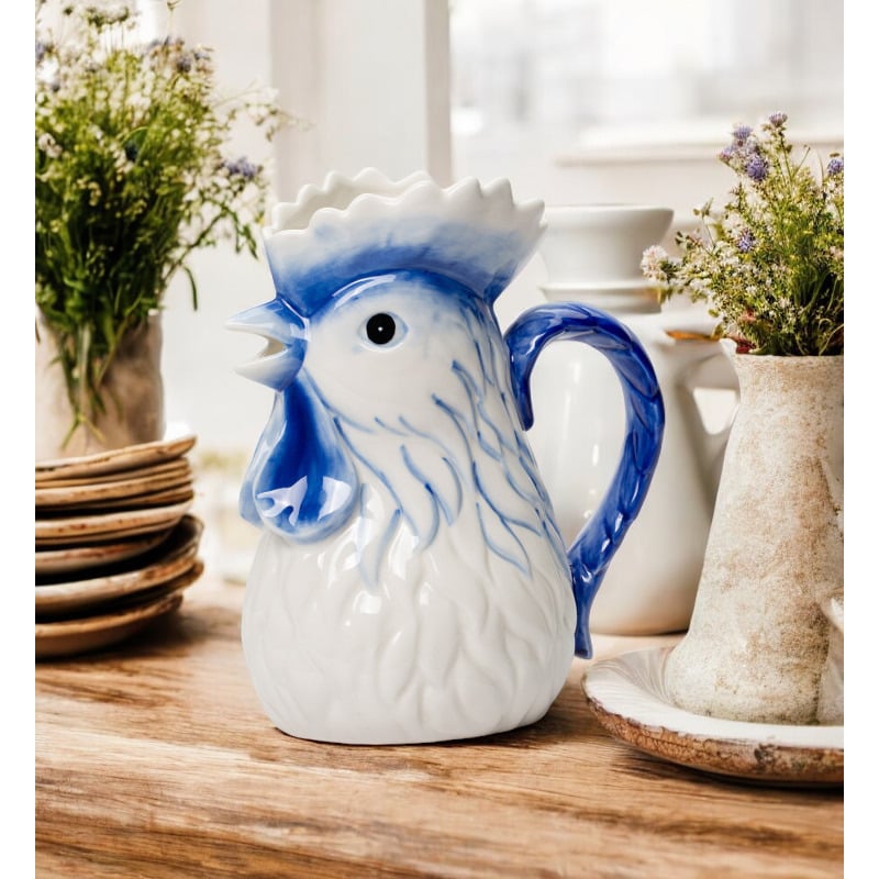 Ceramic Dutch Blue Rooster Pitcher Vase 6.75In Gift