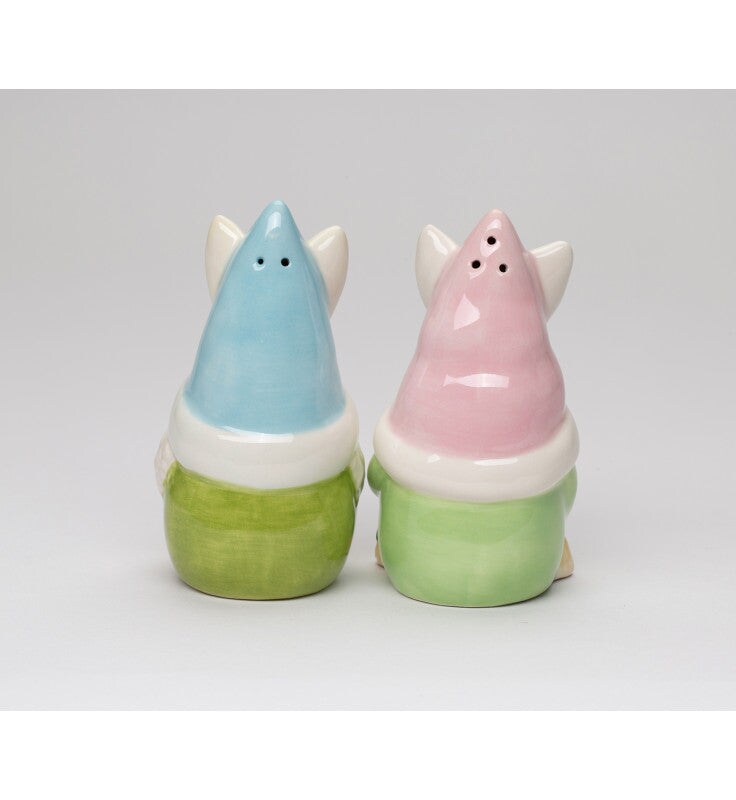 Ceramic Easter Bunny Gnome Holding Egg Salt and Pepper Shakers, Easter Decor, Fairy Garden Decor, Spring Decor, Gnome Collector Gift