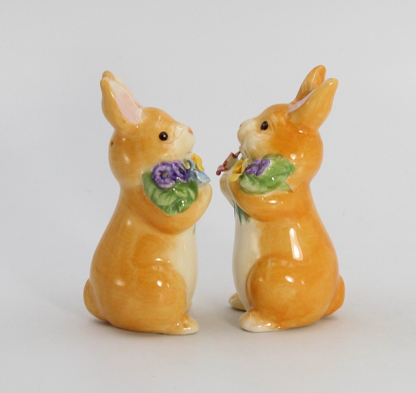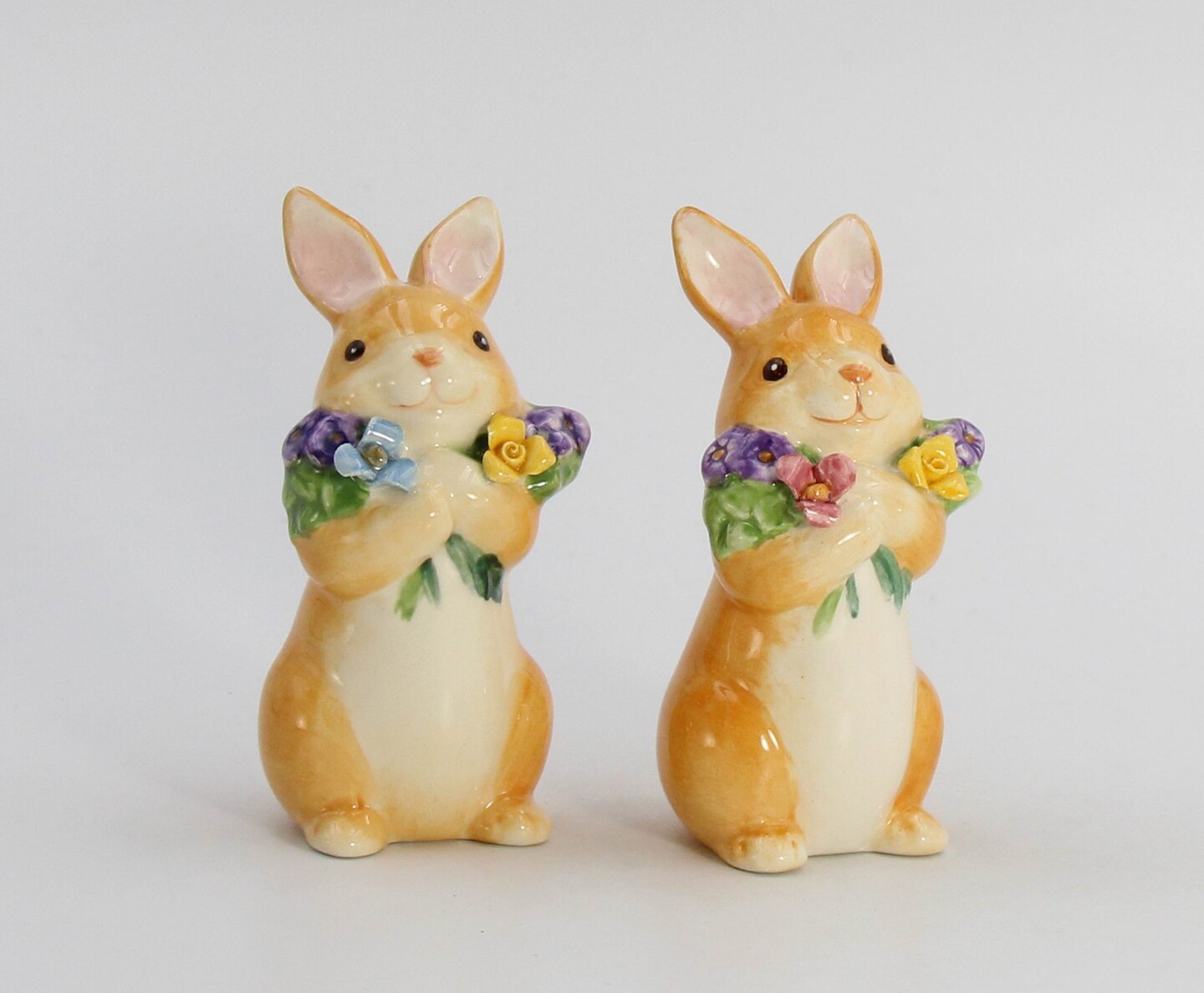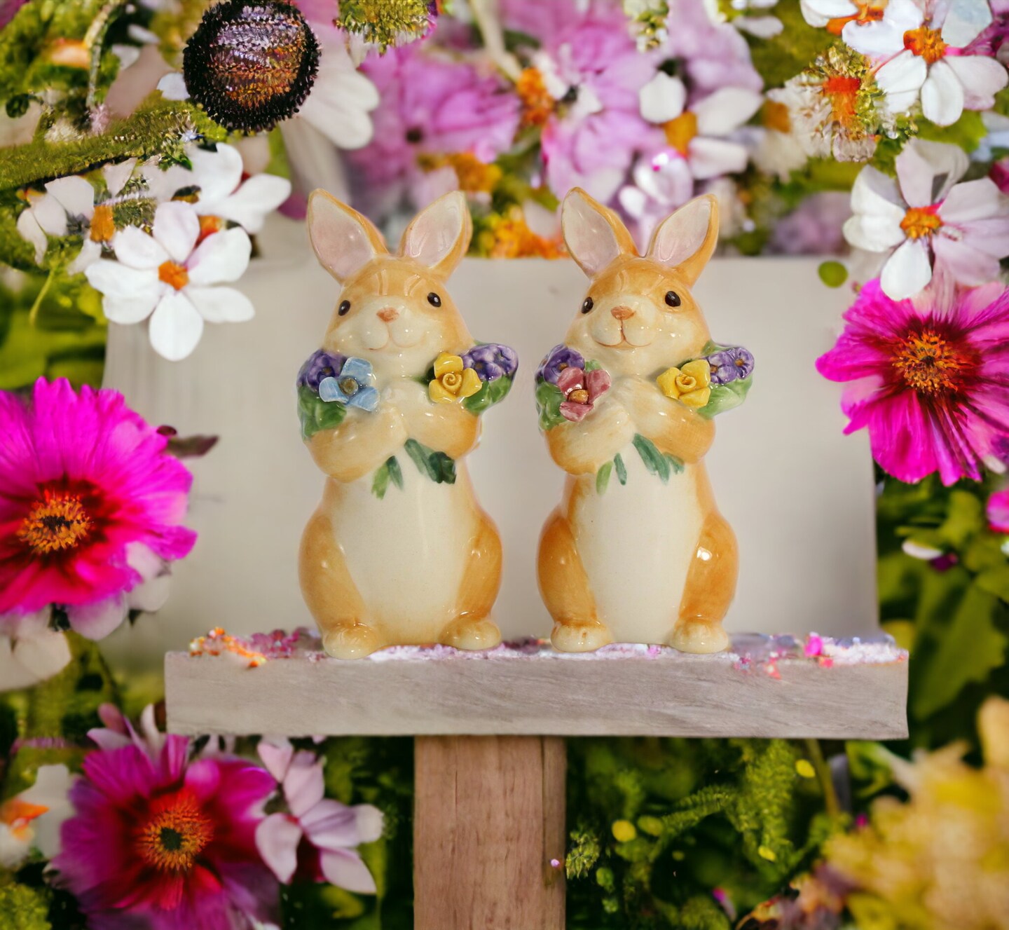 Ceramic Easter Bunny Rabbits with Flowers Salt and Pepper, Home Décor, Gift for Her, Gift for Mom, Kitchen Décor, Spring Décor, Easter Décor