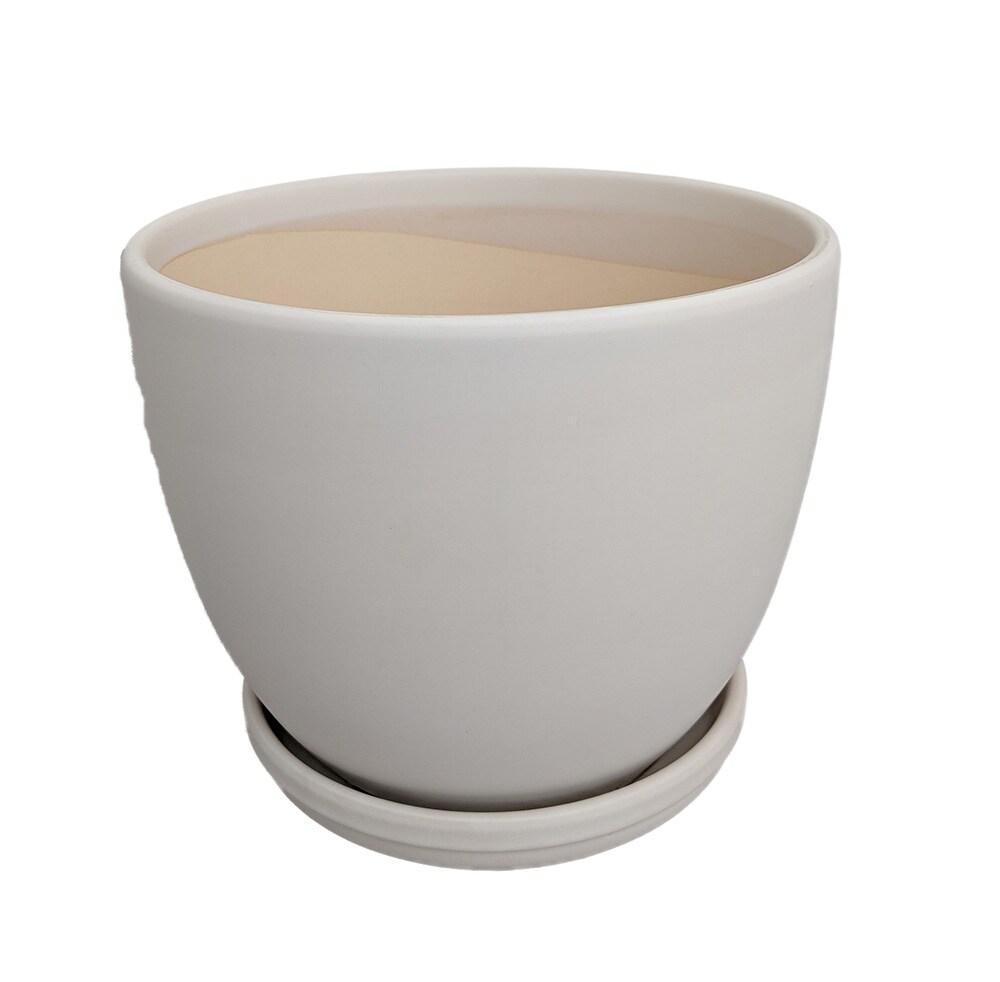 Ceramic Egg Pot with Attached Saucer - Matte White - 5" x 5"