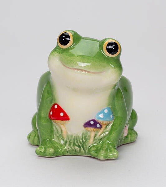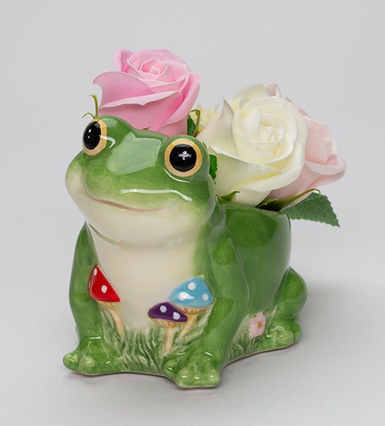 Ceramic Frog with Mushrooms Flower Pot, Spring Decor, Frog Lover Gift, Living Room Frog Decor