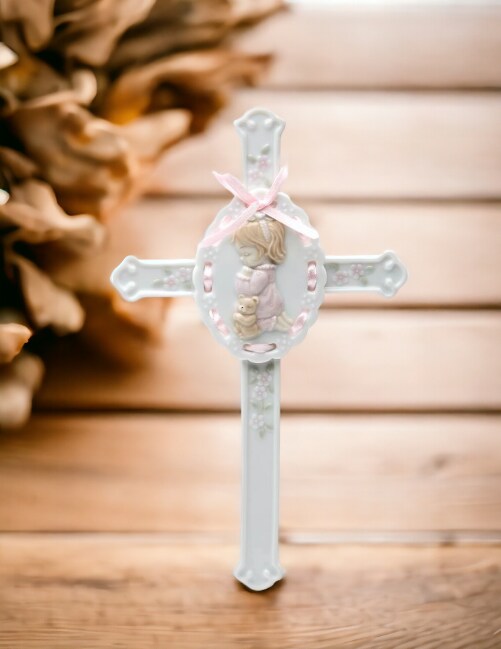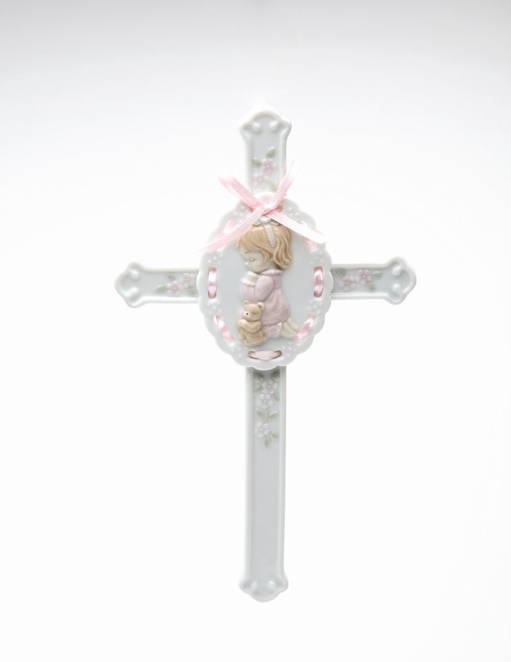 Ceramic Girl Praying Cross, Religious Decor, Baptism Gift, Church Gift, Church Decor, Wall Decor, Gift for Daughter