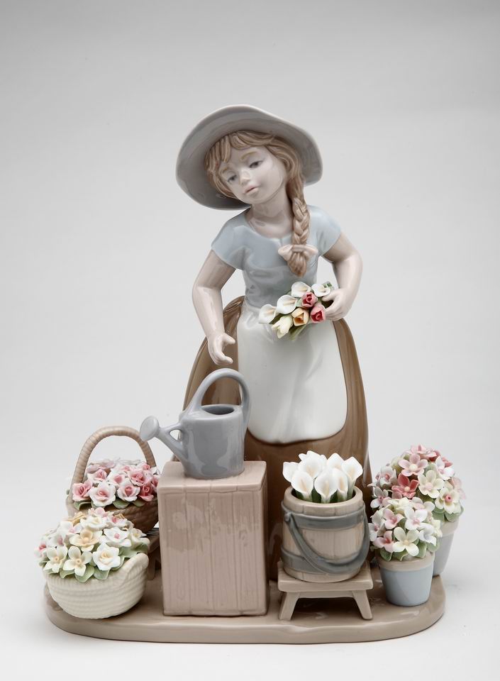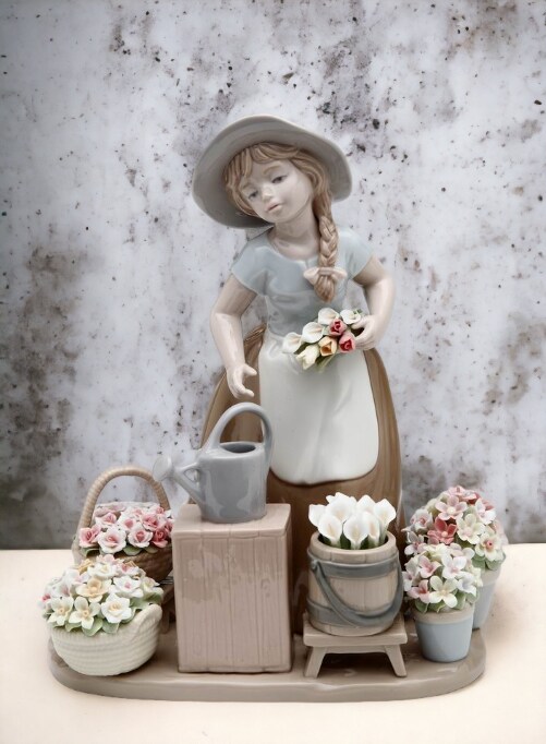 Ceramic Girl with Flower Baskets Figurine, Home Décor, Gift for Her, Mom, Farmhouse Kitchen Décor, Vintage Decor