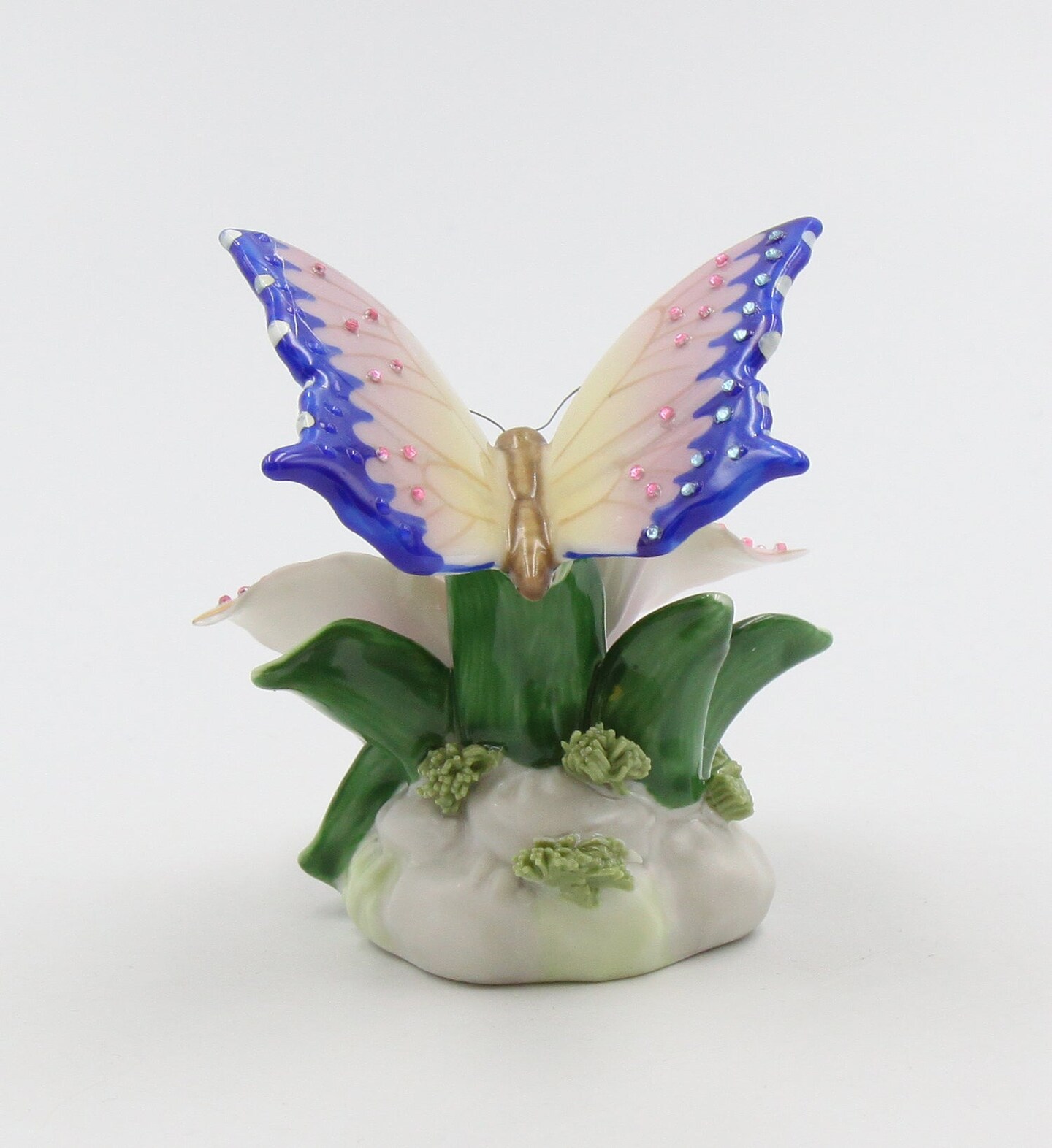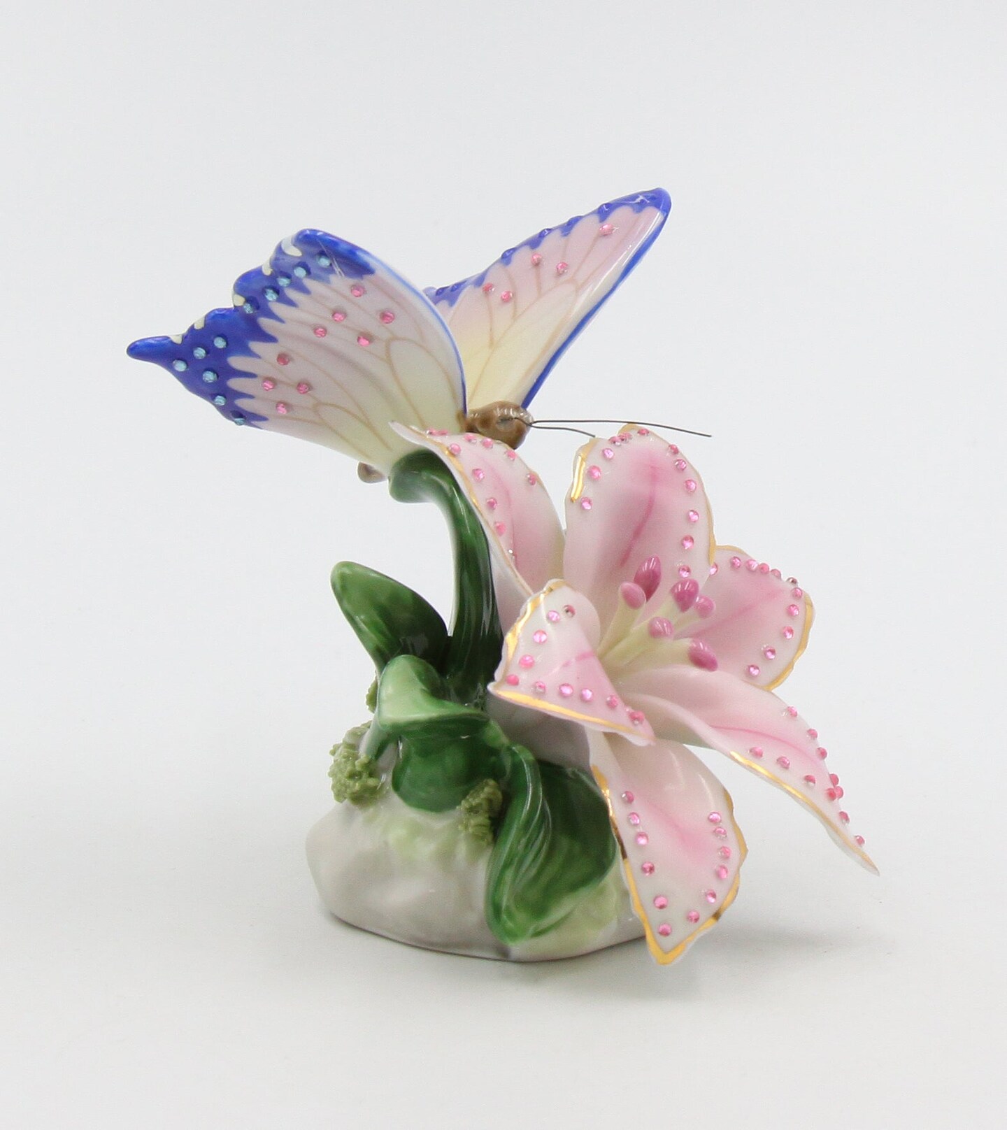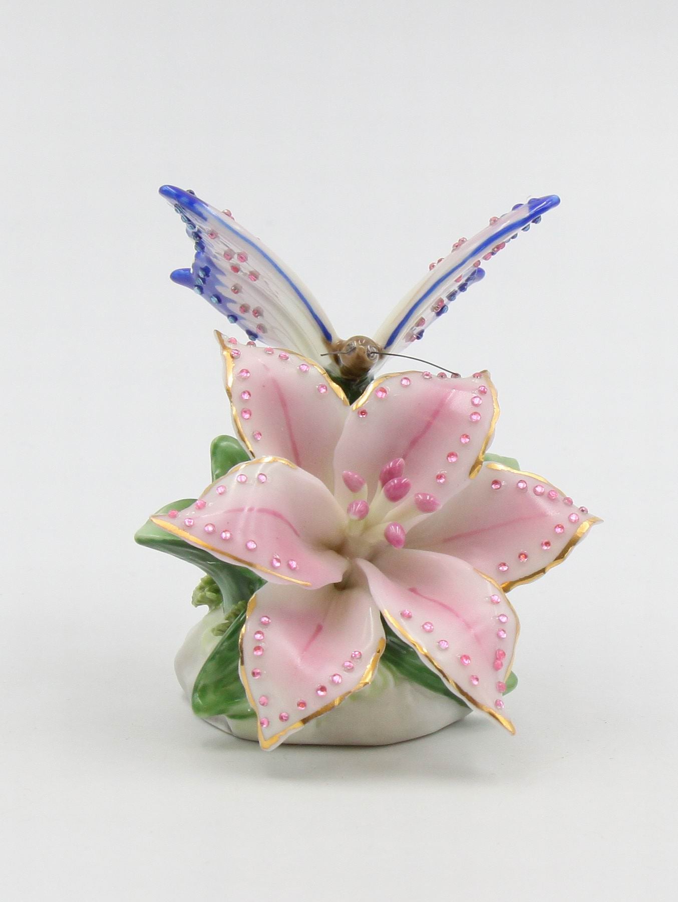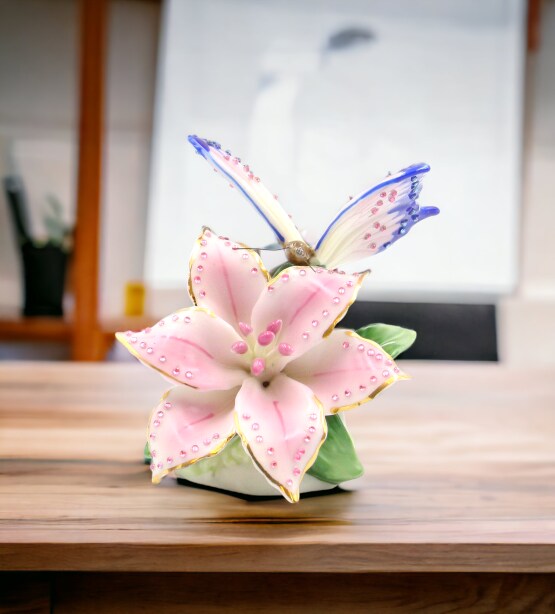Ceramic Glittering Butterfly and Lily Flower in Bloom Figurine, Home Décor, Gift for Her, Gift for Mom, Nature Lover Décor, Cottagecore