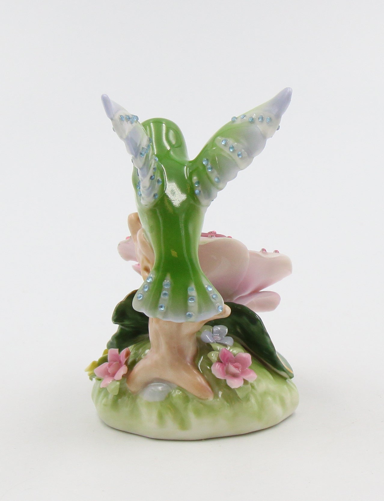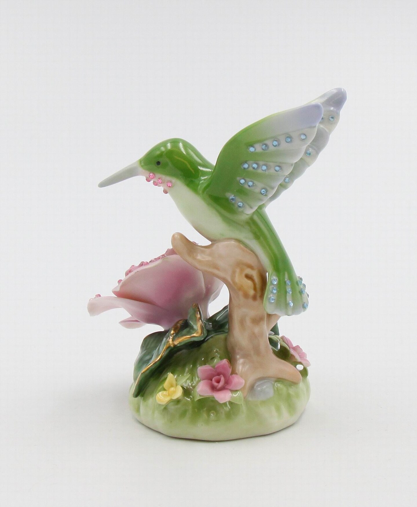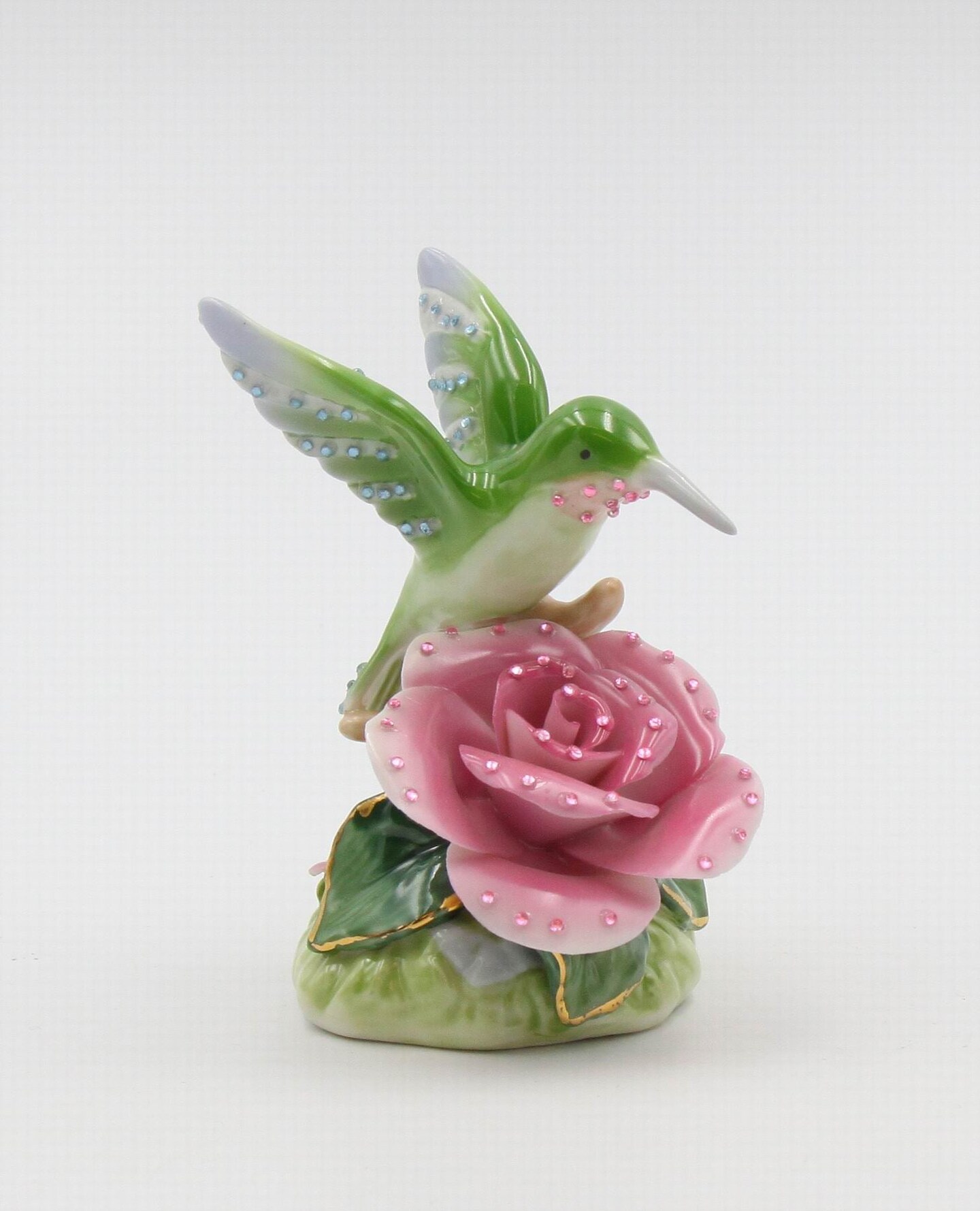 Ceramic Glittering Hummingbird With Pink Rose Flower Figurine, Home Décor, Gift for Her, Gift for Mom, Nature Lover Décor, Cottagecore