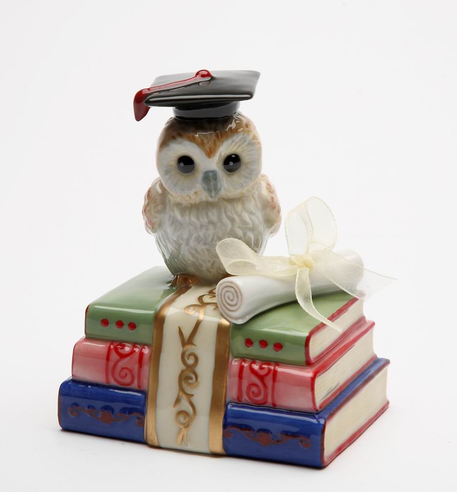 Ceramic Graduating Owl Music Box Playing "Over the Rainbow", Home Décor, Graduation Gift, Gift for Son, Gift for Daughter