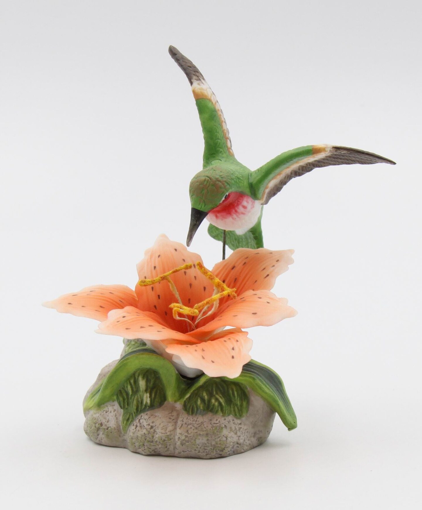 Ceramic Hummingbird with Lily Flower Figurine, Home Décor, Gift for Her, Gift for Mom, Nature Lover Gift, Birdwatcher Gift