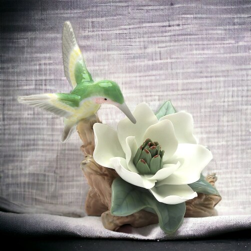 Ceramic Hummingbird with Magnolia Flower Figurine, Home Décor, Gift for Her, Gift for Mom, Kitchen Décor, Birdwatcher Gift, Vintage Decor