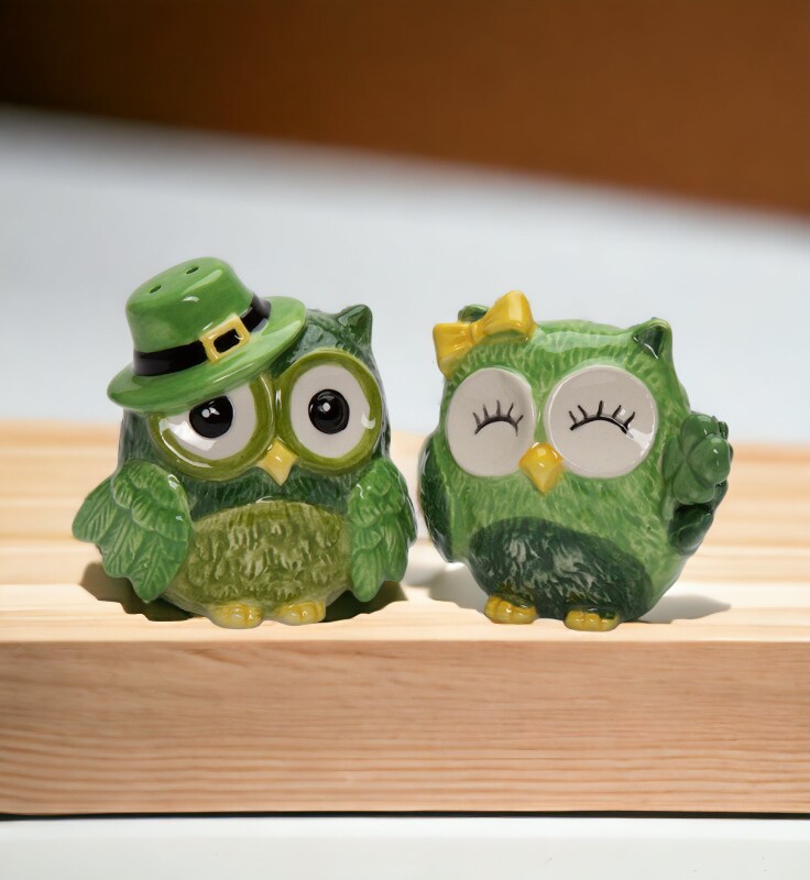 Ceramic Irish Owl Salt And Pepper Shakers, Home Décor, Gift for Her, Gift for Mom, Kitchen Décor, Irish Saint Patrick’s Day Décor