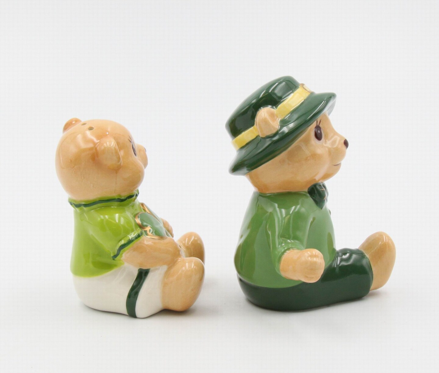 Ceramic Irish Teddy Bear Couple with Shamrock Salt and Pepper, Gift for Her, Gift for Mom, Kitchen Décor, Irish Saint Patrick’s Day Décor