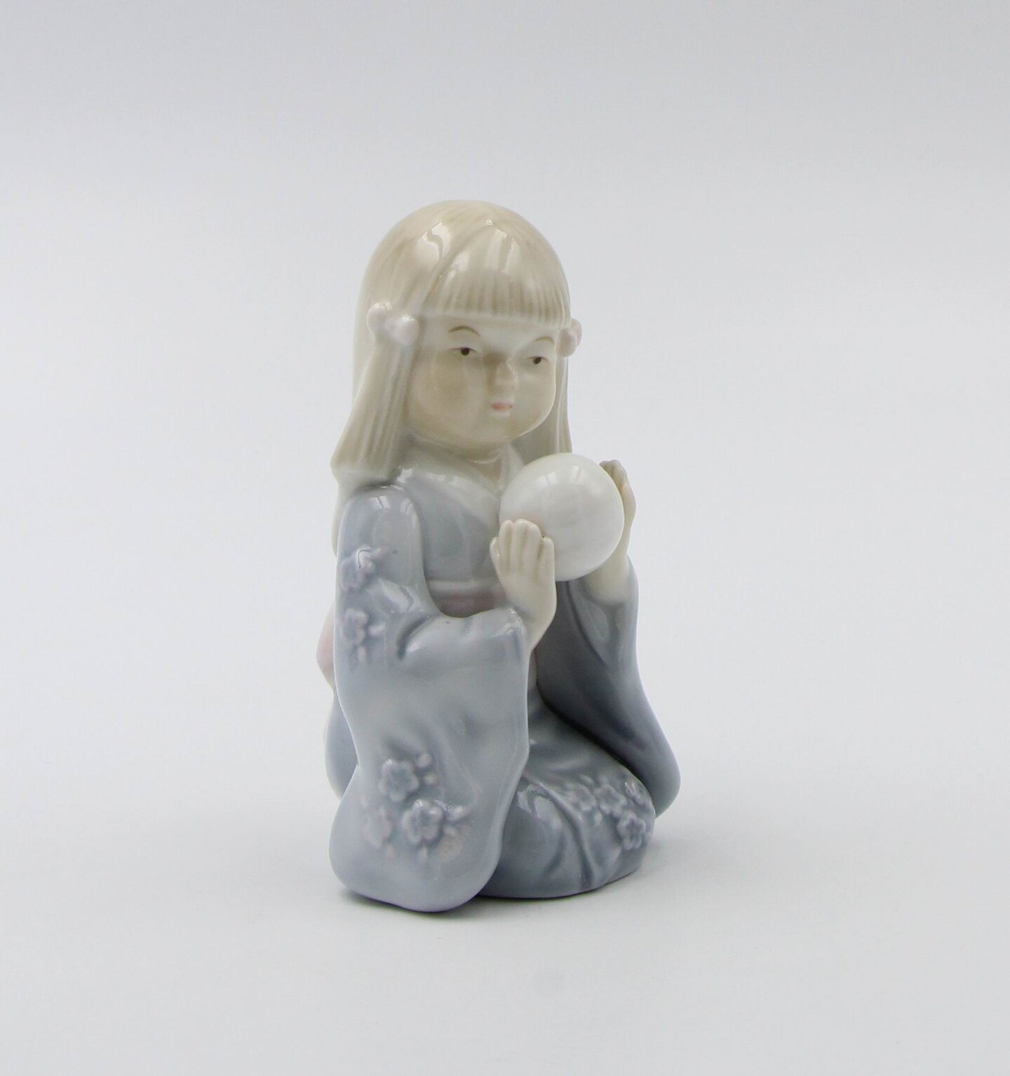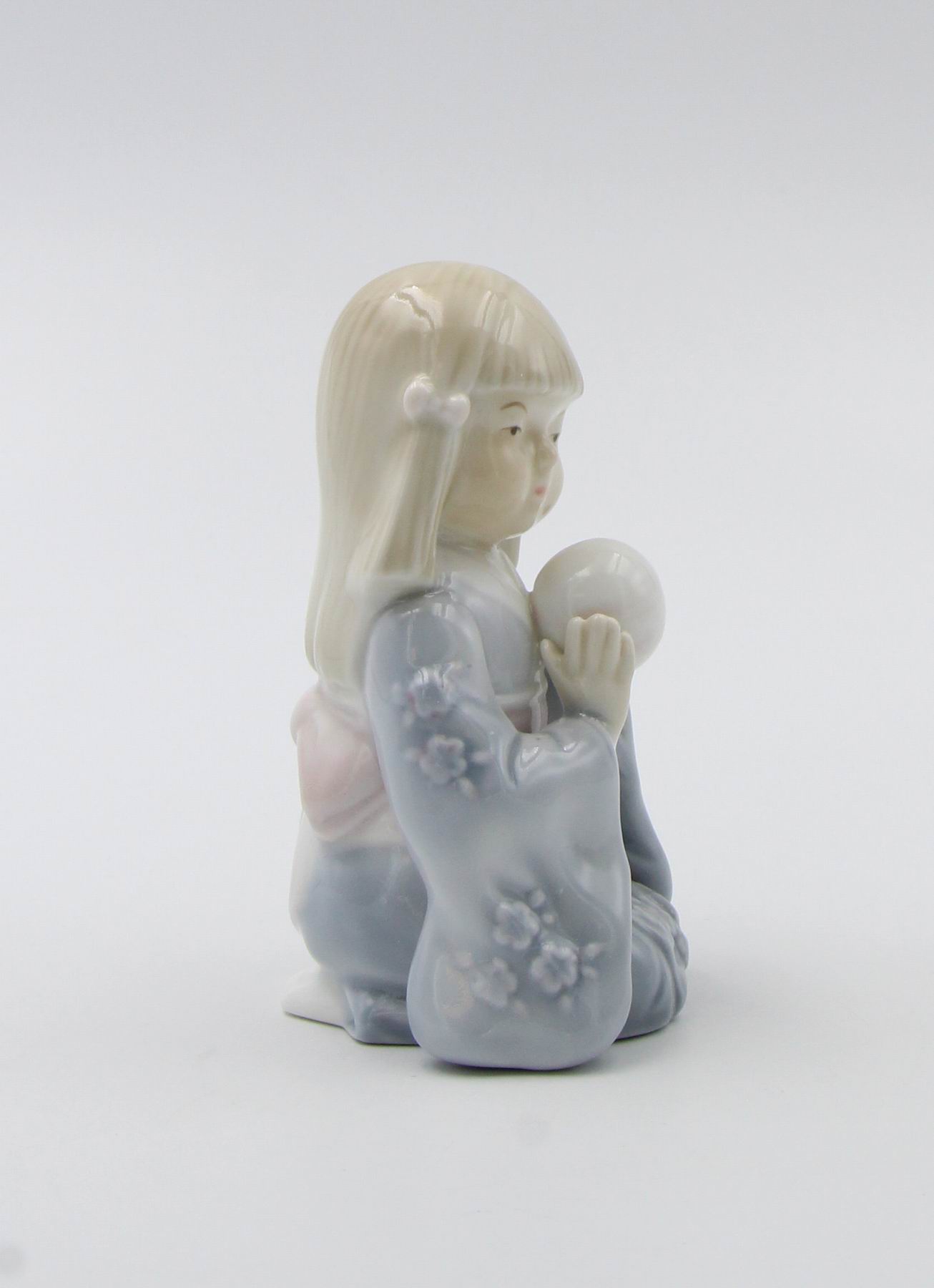 Ceramic Japanese Girl in Kimono Dress Playing with Temari Ball Figurine, Gift for Her, Gift for Daughter, Home Decor, Asian Decor