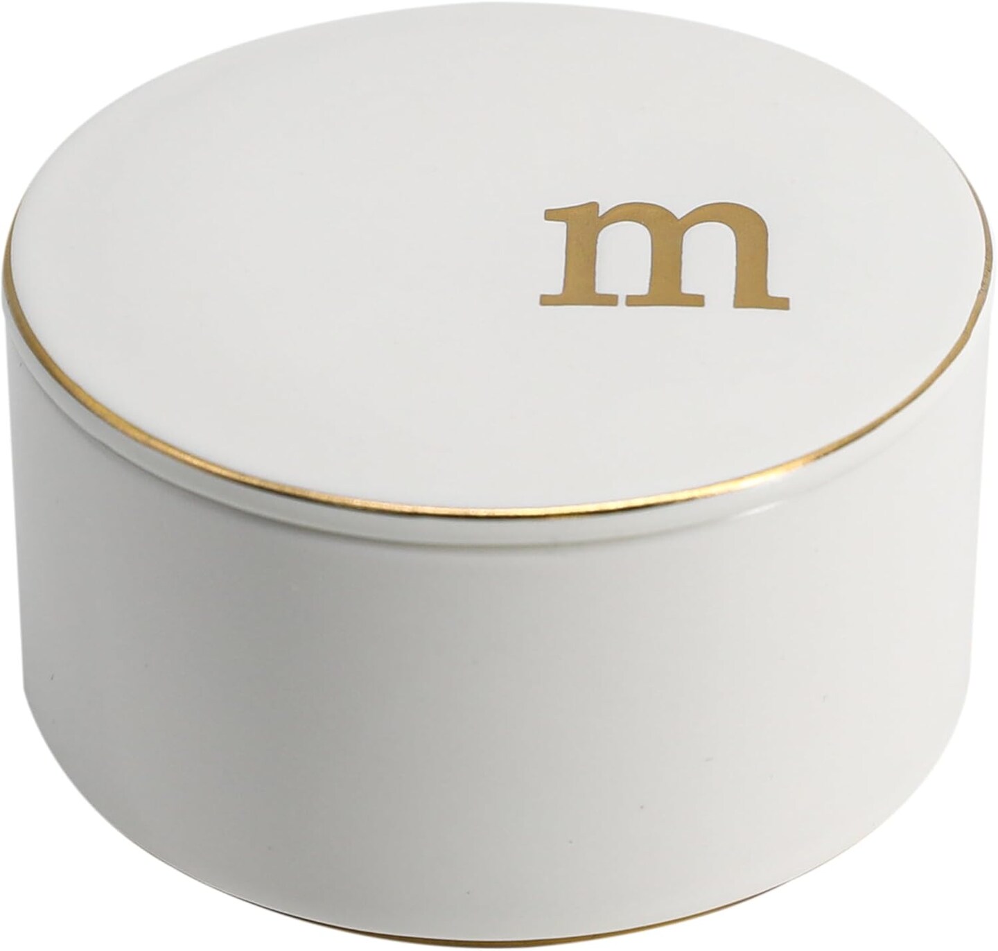 Ceramic Jewelry Box with Gold Monogram Lid – Elegant Cylinder Trinket Organizer for Rings, Necklaces, Bracelets, Earrings, and Small Accessories (Medium, White)