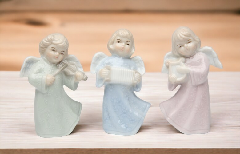 Ceramic Joyful Angels Figurines (Set Of 3), Religious Décor, Religious Gift, Church Décor, Church Gift, Baptism Gift