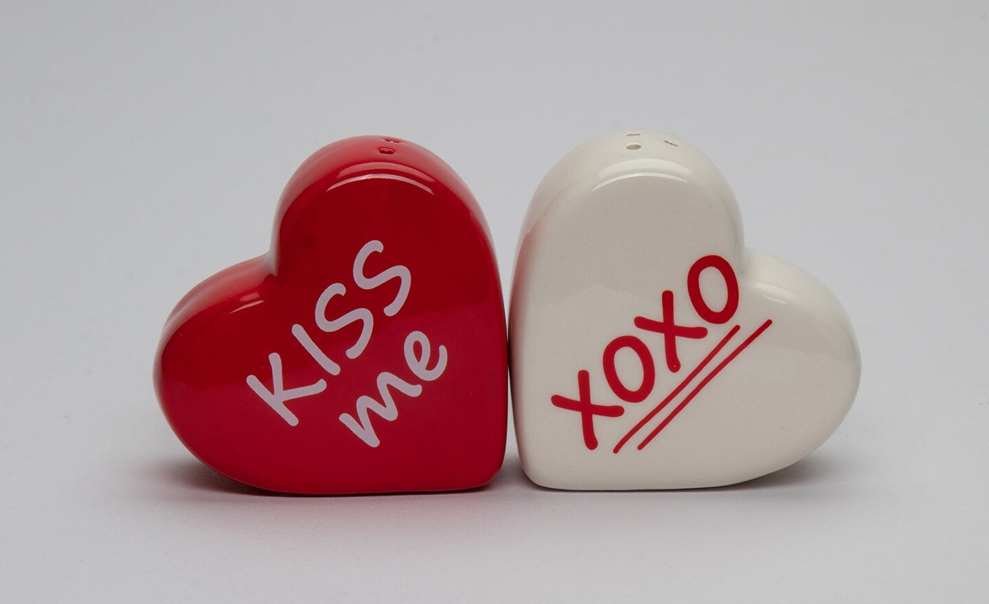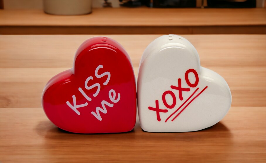 Ceramic Kiss Me And XOXO Heart Shaped Salt And Pepper, Gift for Her, Gift for Mom, Kitchen Décor, Valentine’s Day Décor, Romantic Décor