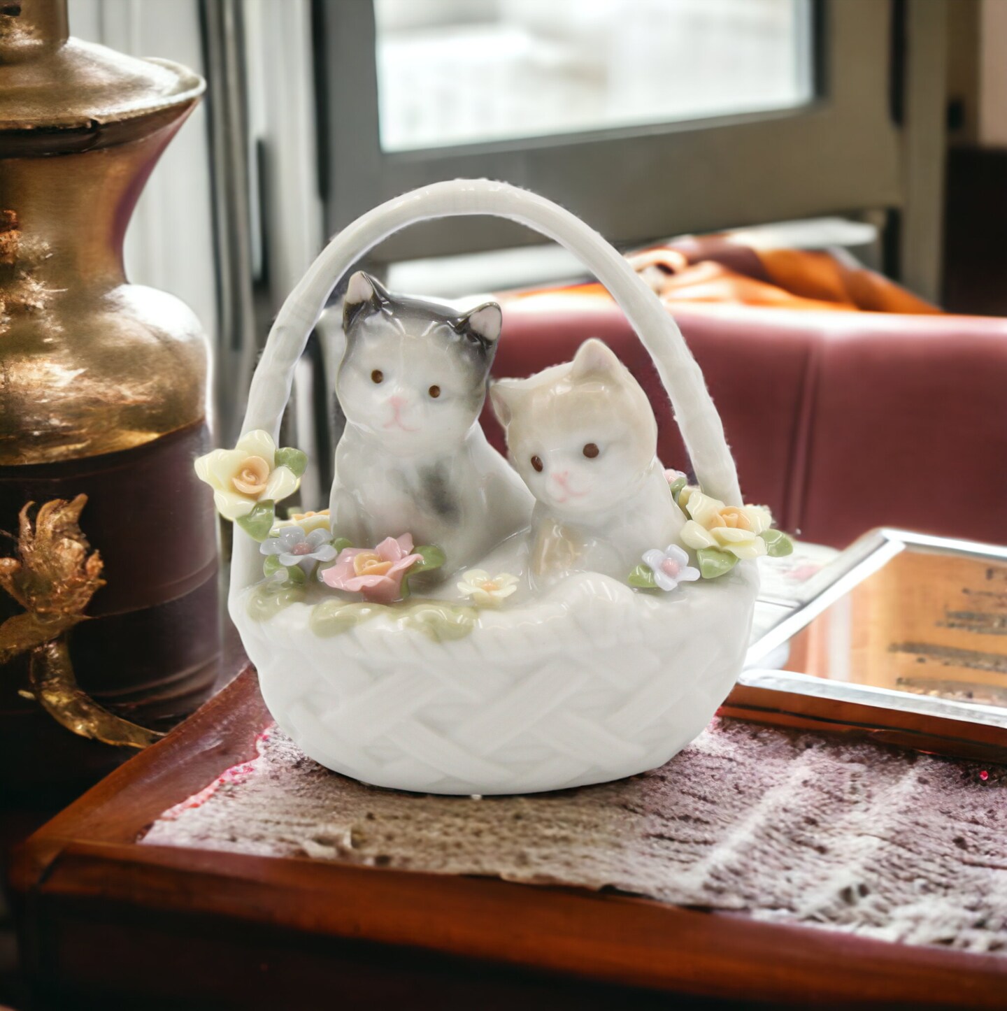 Ceramic Kittens In Basket Figurine, Home Décor, Gift for Her, Gift for Mom, Kitchen Décor, Cat Lovers Gift, Pet Loss Gift