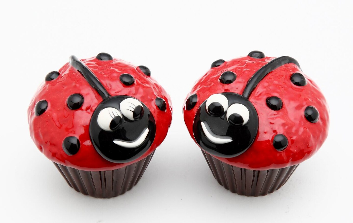 Ceramic Ladybug Cupcake Salt & Pepper Shakers, Home Décor, Gift for Her, Gift for Mom, Kitchen Décor, Bakery Décor, Café Décor