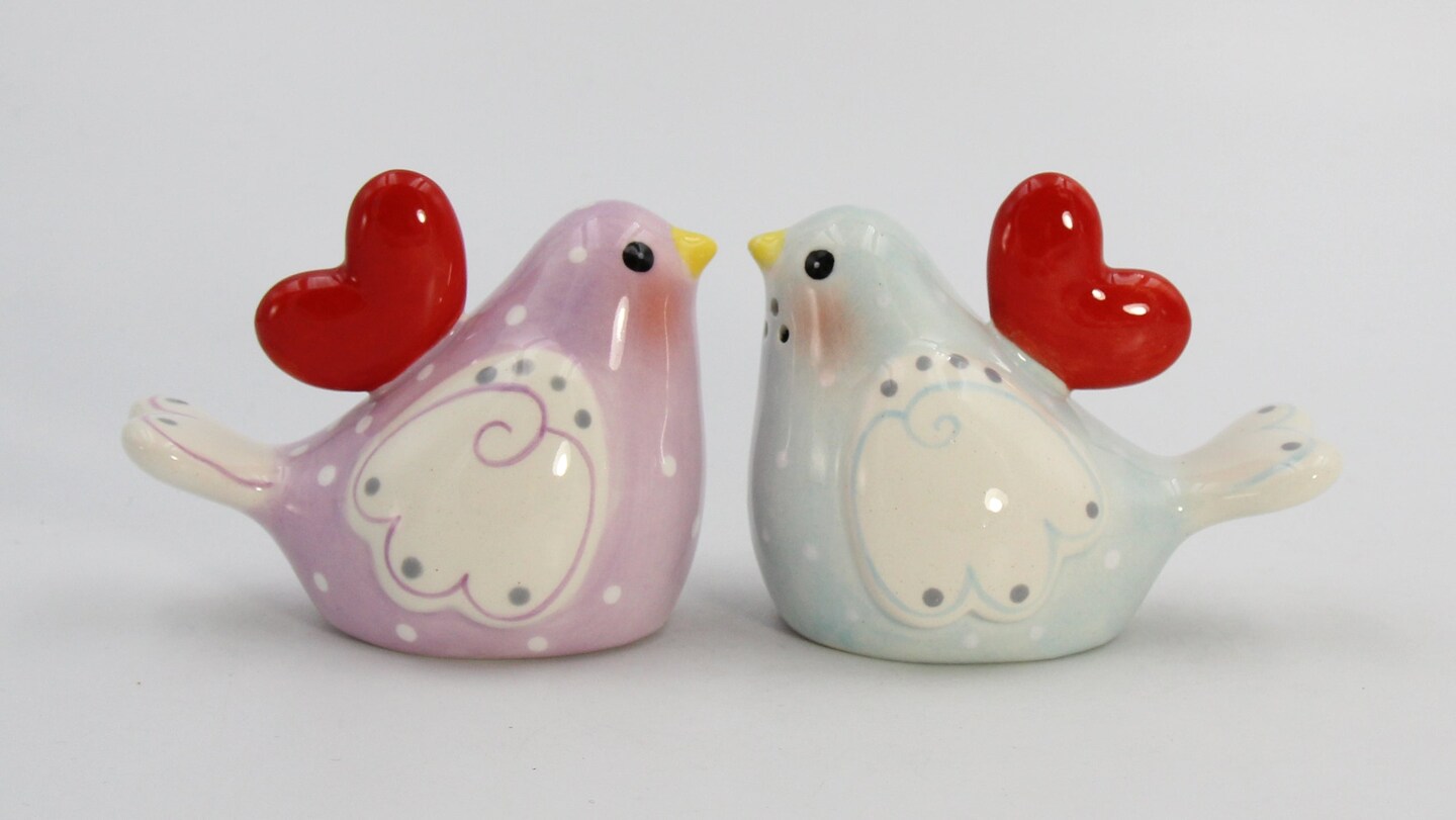 Ceramic Lovebirds with Heart Salt and Pepper Shakers, Romantic Kitchenware, Valentines Day Tableware Decor, Wedding Gift Idea, Galentine's Day Gift