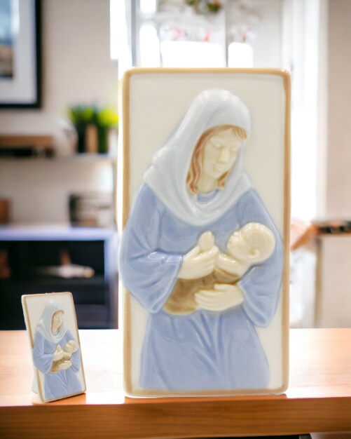 Ceramic Mary Holding Baby Jesus Figurine, Home Décor, Religious Décor, Religious Gift, Church Décor, Baptism Gift