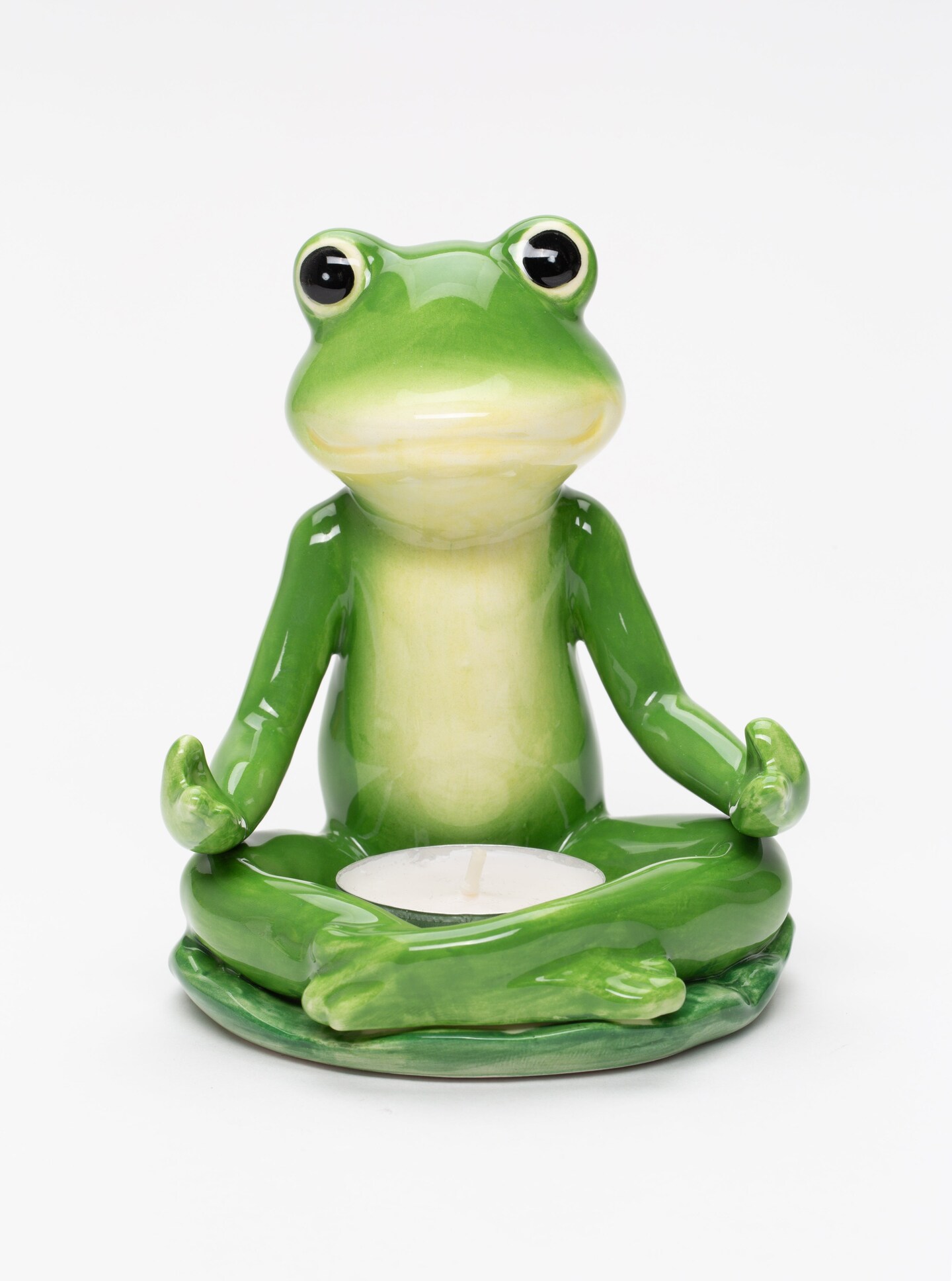 Ceramic Meditating Frog Tealight Candle Holder, Home Décor, Gift for Her, Gift for Mom, Kitchen Décor, Farmhouse Décor, Nature Lover Gift