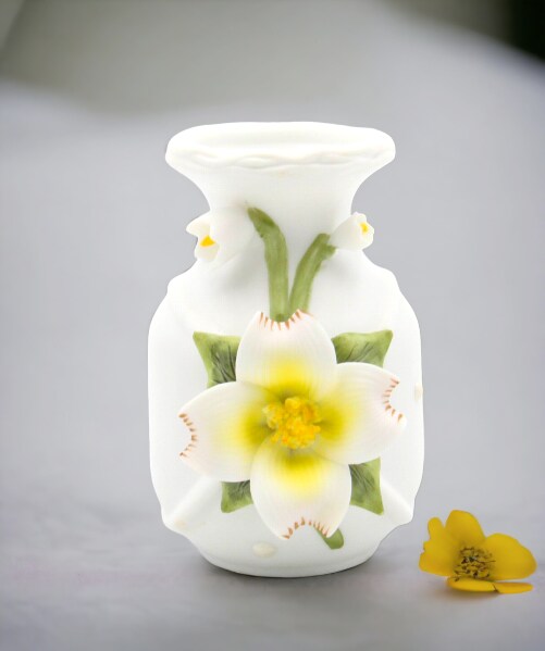 Ceramic Mini Vase with White Flower, Incense Jar, Wedding Décor or Gift, Anniversary Décor or Gift, Home Décor, Vanity Decor