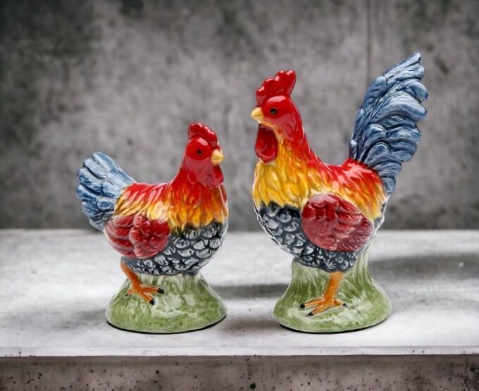 Ceramic Mini-size Rainbow Rooster Salt & Pepper Shakers, Home Décor, Gift for Her, Gift for Mom, Kitchen Décor, Farmhouse Decor