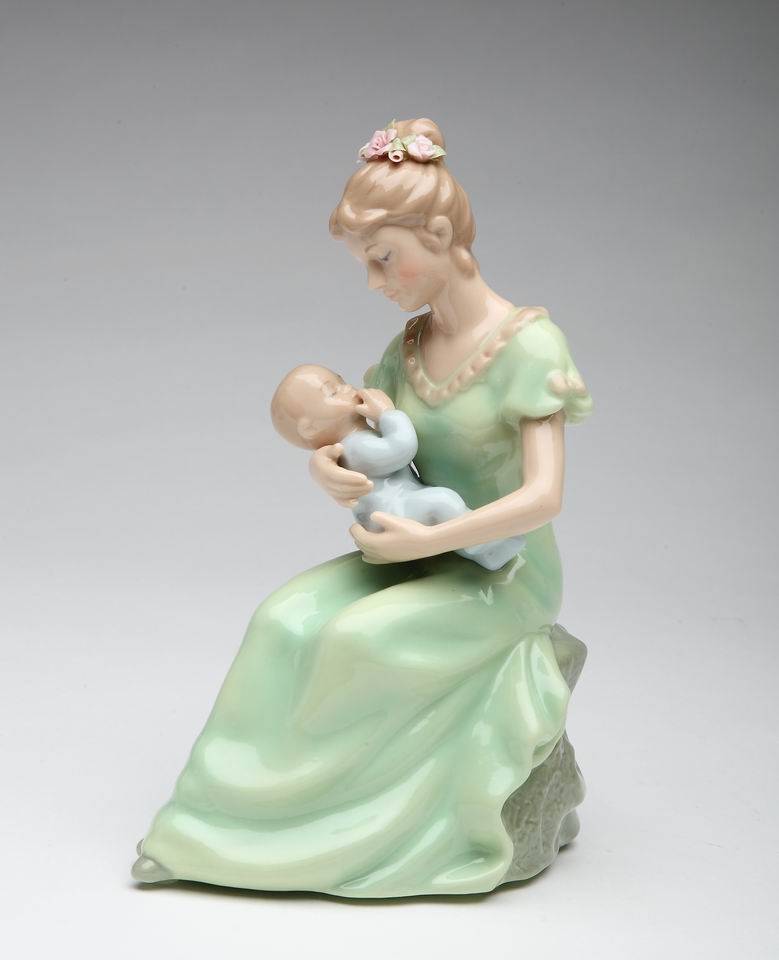 Ceramic Mom Holding Baby Boy Music Box, Home Décor, Nursery Room Décor, Baby Shower Gift