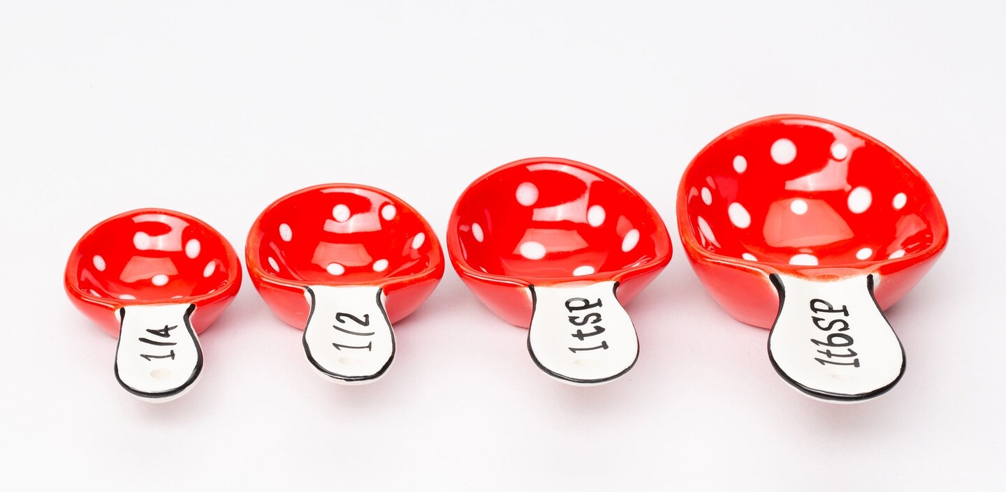 Ceramic Mushroom Measuring Spoons Set of 4, Gift for Baker, Gift for Mom, Kitchen Decor