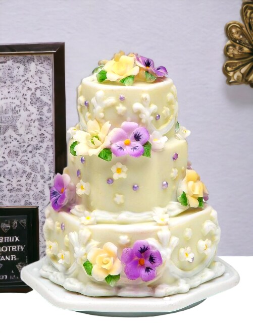 Ceramic Pansy Flower Cake Shaped Jewelry Box, Home Décor, Gift for Her, Gift for Mom, Nature Lover Gift, Vanity Decor, Wedding Gift