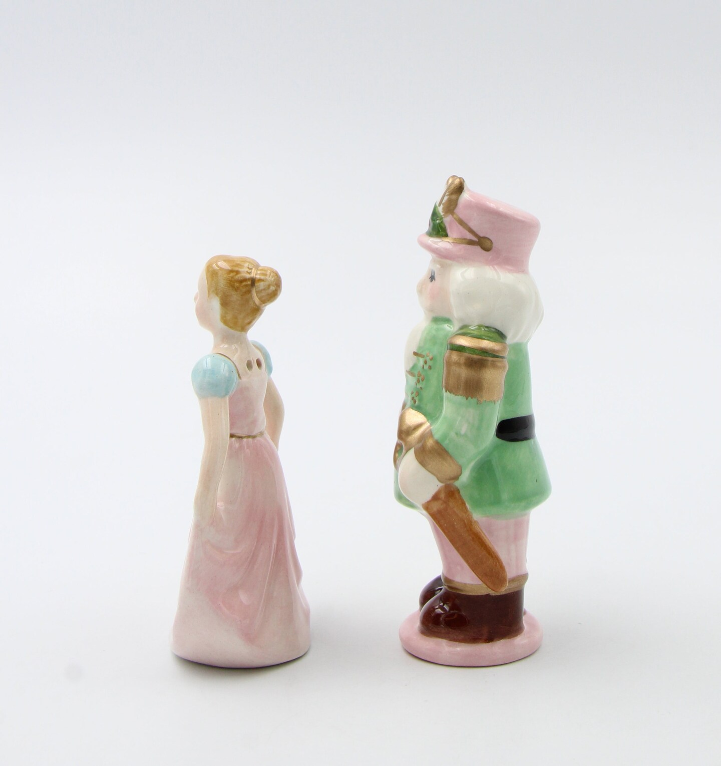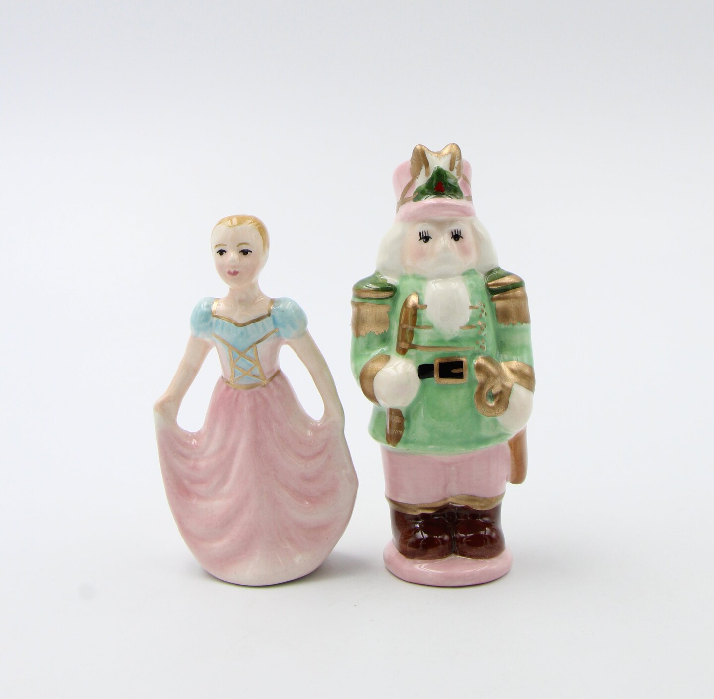 Ceramic Pastel Color Nutcracker and Girl Salt and Pepper Shakers, Home Décor, Gift for Her, Gift for Mom, Kitchen Décor, Christmas Décor