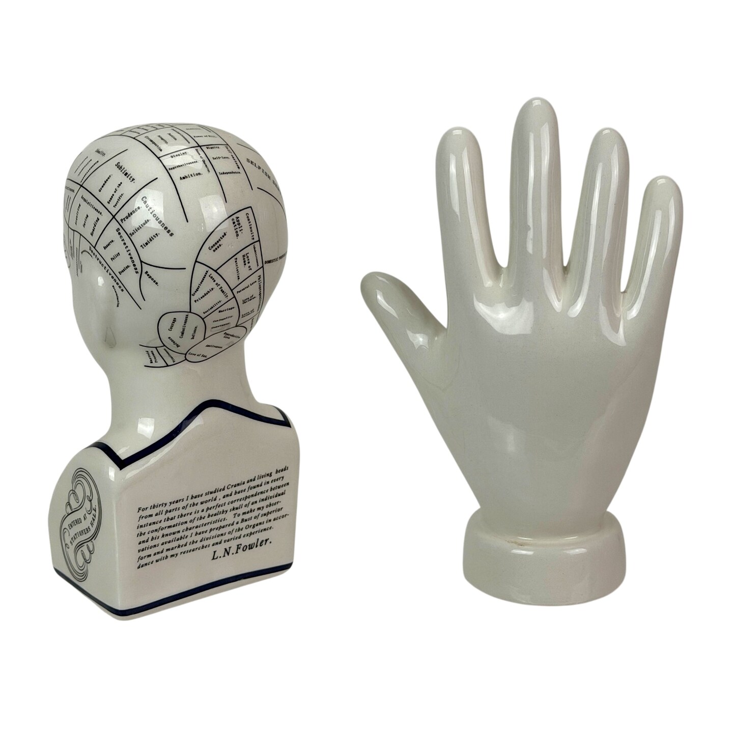 Ceramic Phrenology Bust Collectible Figurine Glossy White Scientific Decor