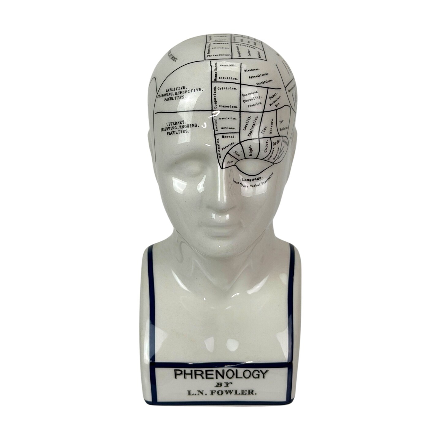 Ceramic Phrenology Bust Collectible Figurine Glossy White Scientific Decor