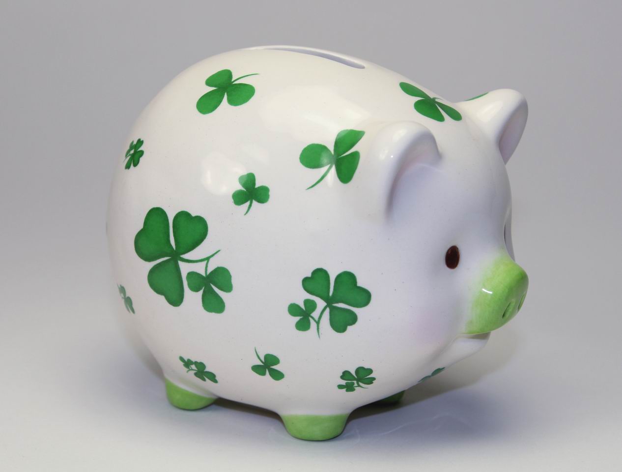 Ceramic Pig with Shamrock Design Piggy Bank, Home Décor, Gift for Her, Gift for Mom, Kitchen Décor, Irish Saint Patrick’s Day Décor