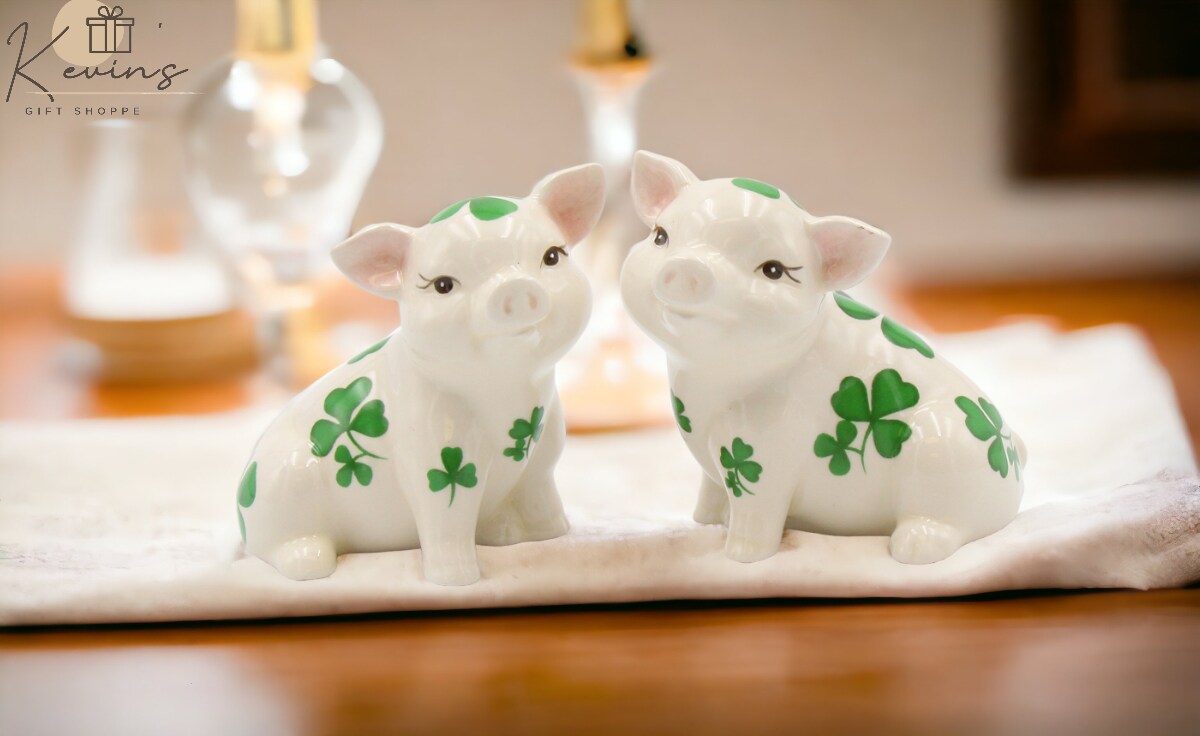 Ceramic Pigs with Shamrock Design Salt and Pepper Shakers, Gift for Her, Gift for Mom, Kitchen Décor, Irish Saint Patrick’s Day Décor