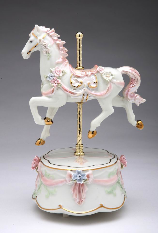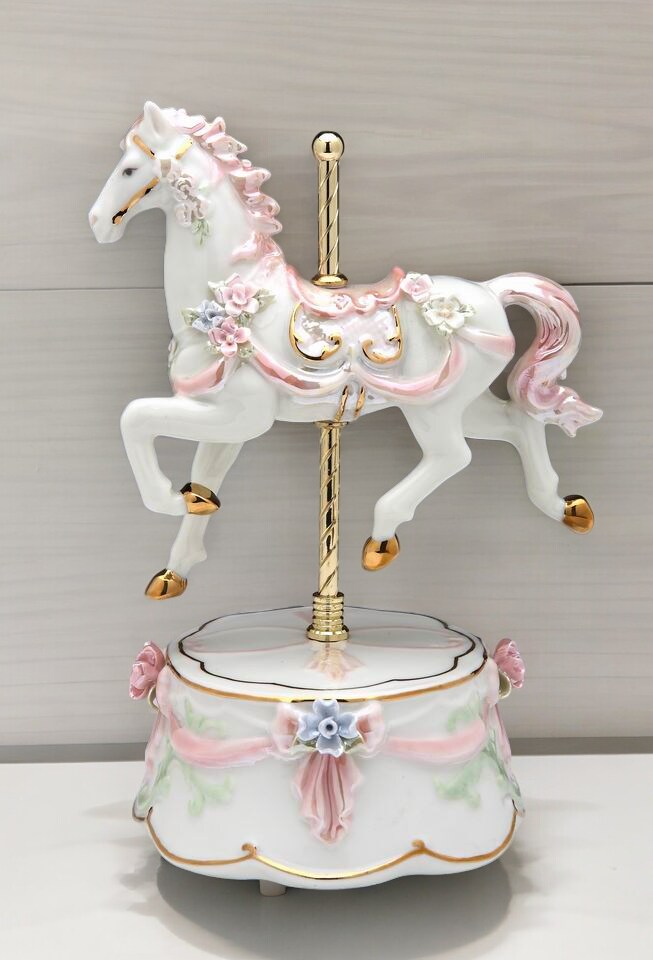 Ceramic Pink Carousel Horse Music Box, Horse Lover Gift, Gift for Her, Gift for Mom, Home Decor