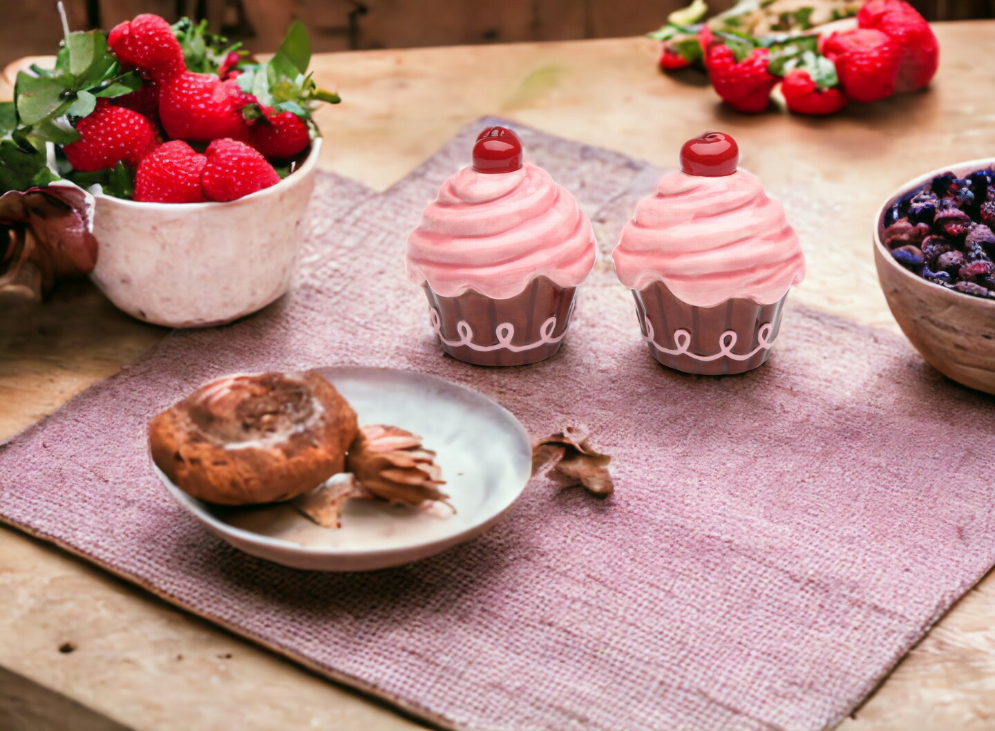 Ceramic Pink Cupcake Salt & Pepper Shakers, Wedding Décor, Gift for Her, Gift for Mom, Kitchen Décor, Bakery Décor, Café Décor
