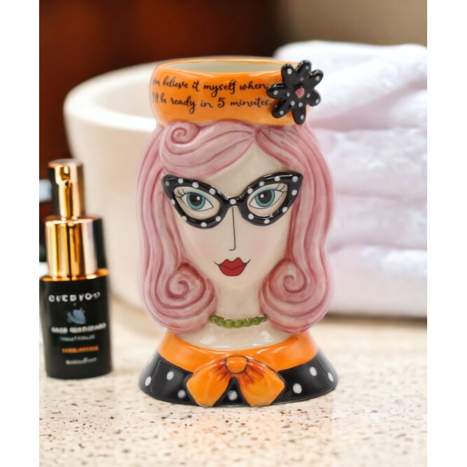 Ceramic Pink Hair Lady Makeup Brush Holder, Home Decor Home Decoration Gift Idea