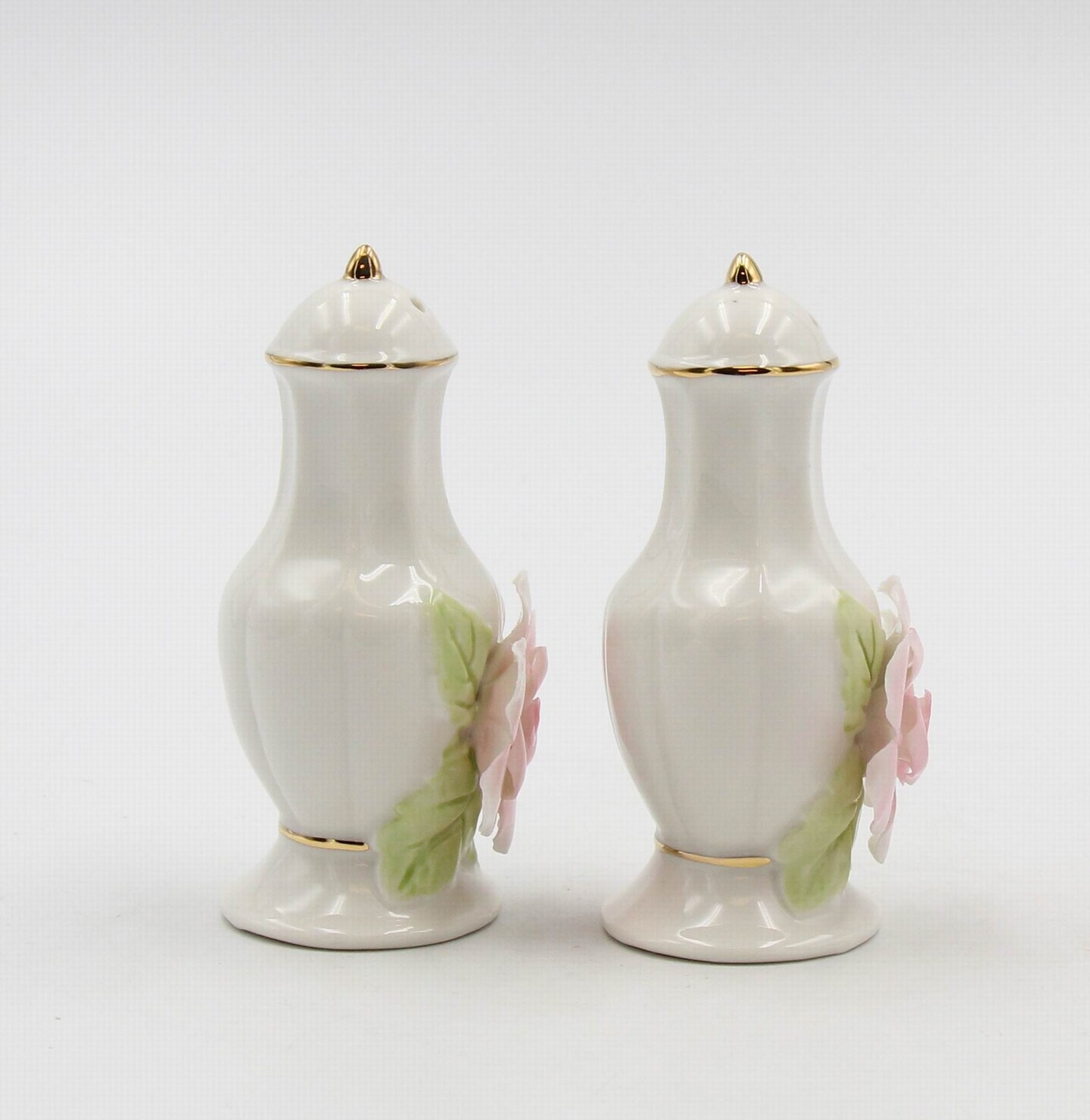 Ceramic Pink Rose Jar With Gold Trim Salt And Pepper Shakers, Home Décor, Gift for Her, Gift for Mom, Kitchen Décor