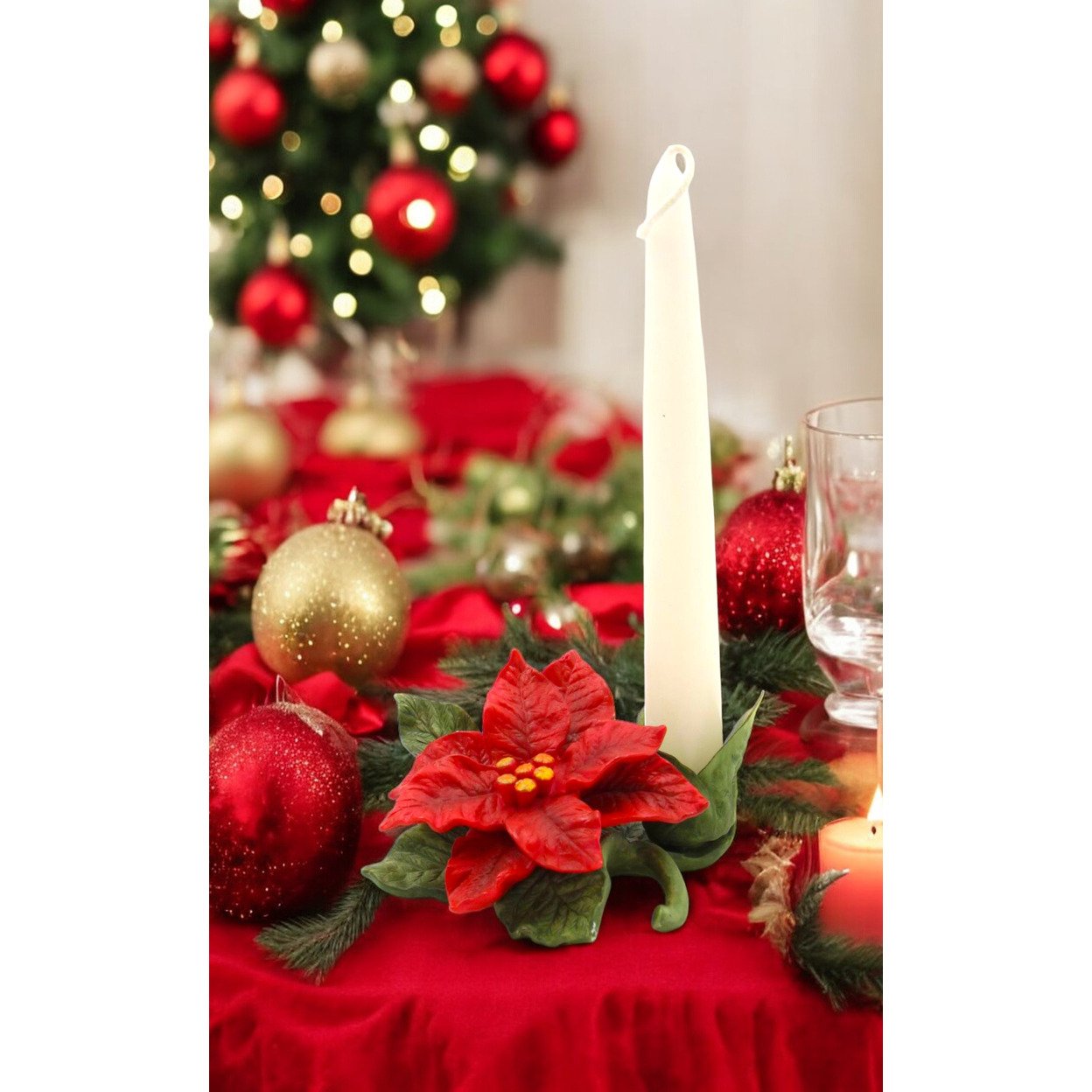 Ceramic Poinsettia Flower Candle Holder 2.5In Christmas