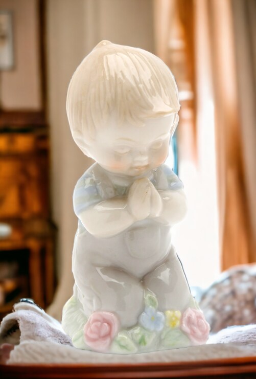 Ceramic Praying Boy Figurine, Religious Décor, Religious Gift, Church Décor, Baptism Gift