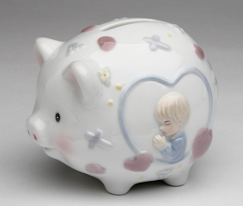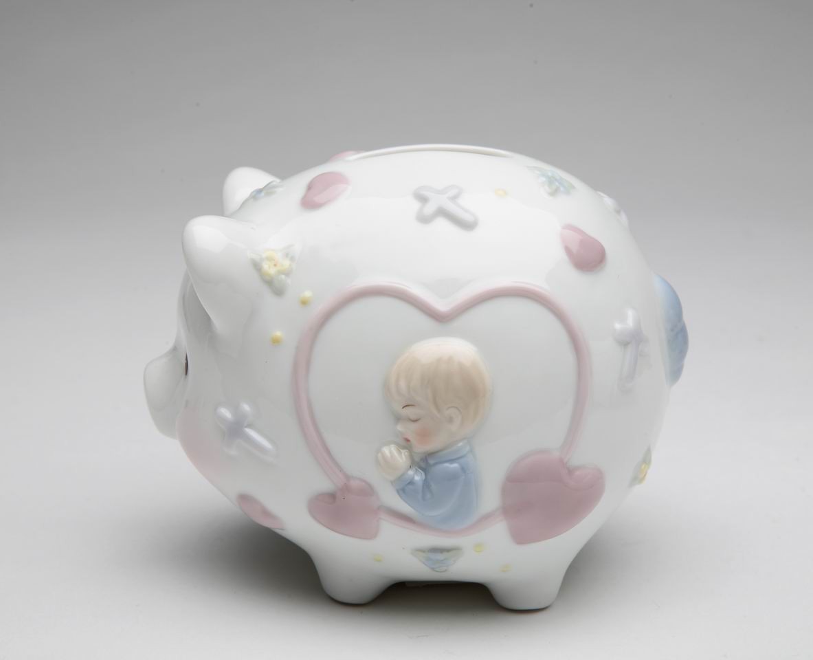 Ceramic Praying Boy Piggy Bank, Home Décor, Religious Décor, Religious Gift, Church Décor, Baptism Gift, Nursery Room Decor