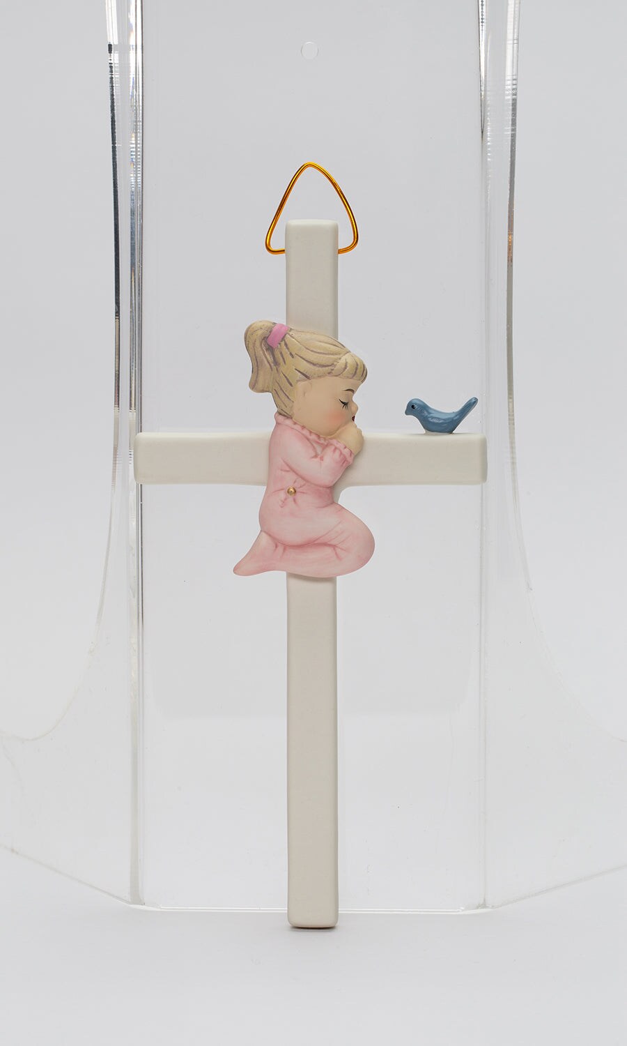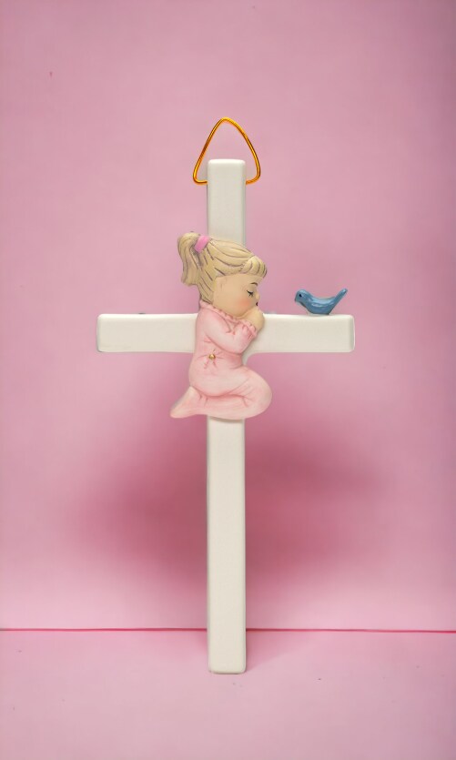 Ceramic Praying Girl With Bird Cross Wall Decor, Religious Décor, Religious Gift, Church Décor, Church Gift, Baptism Gift, Nursery Decor