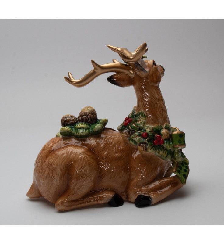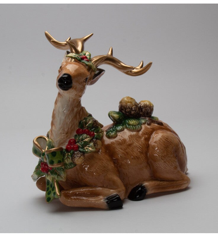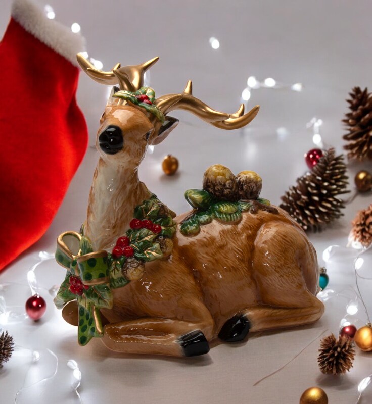 Ceramic Reindeer with Pine Cone Figurine, Christmas Decor