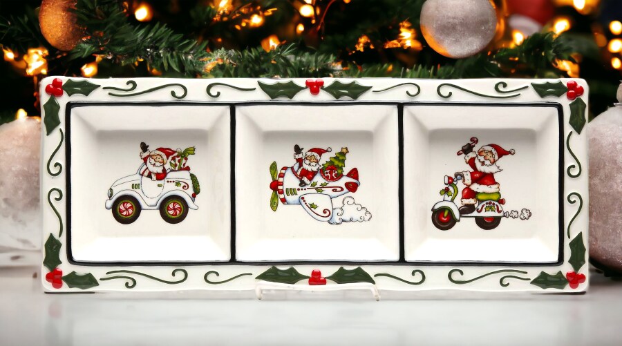 Ceramic Santa Claus 3 Section Plate, Home Décor, Gift for Her, Gift for Mom, Kitchen Décor, Christmas Décor