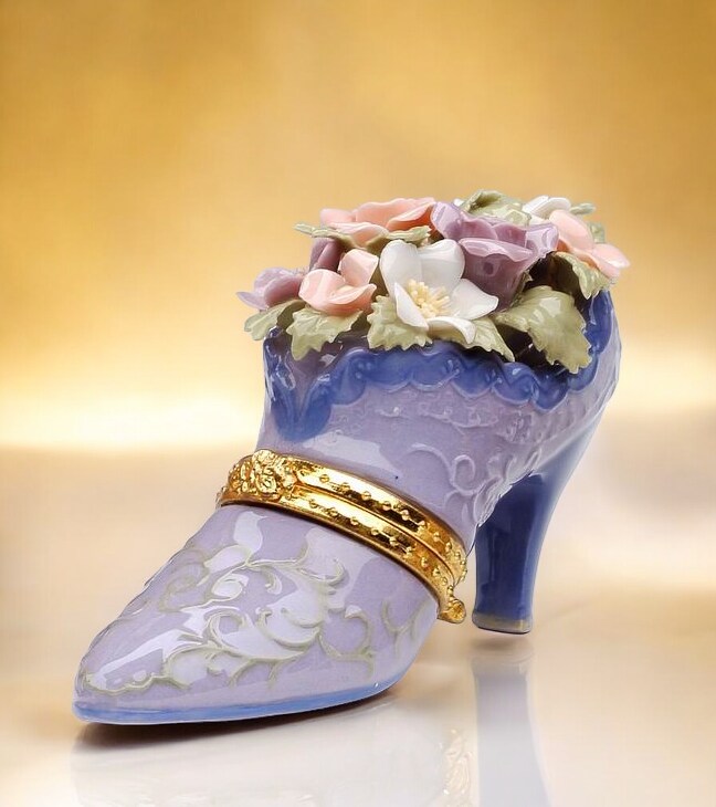 Ceramic Shoe Filled with Flowers Hinge Box, Shoe Lover Gift, Vanity Decor, Gift for Her, Gift for Mom