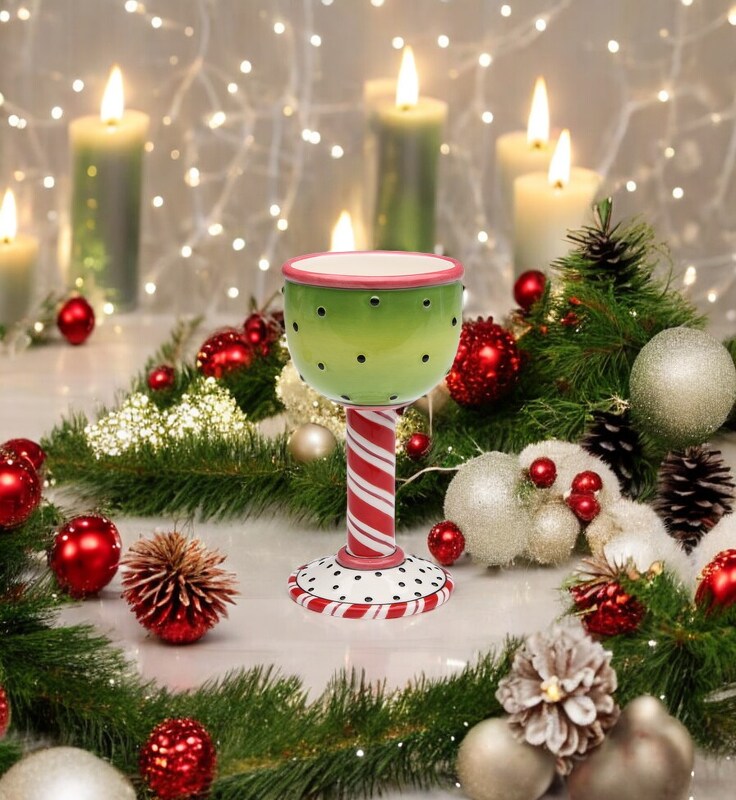Ceramic Short Goblet Cups (Set Of 2), Christmas Decor