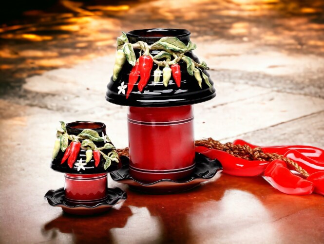 Ceramic Small Size Chili Pepper Candle Shade and Base, Home Décor, Gift for Her, Gift for Mom, Kitchen Décor, Farmhouse Décor