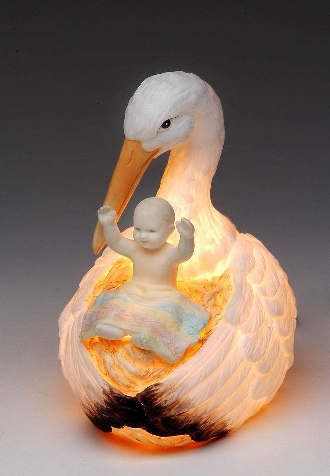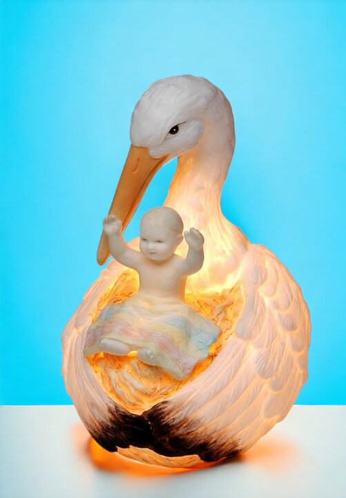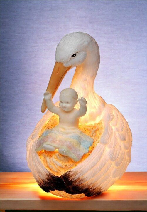 Ceramic Stork Holding Baby Nightlight, Home Décor, Nursery Room Décor, Baby Registry Gift, Gift for New Parents