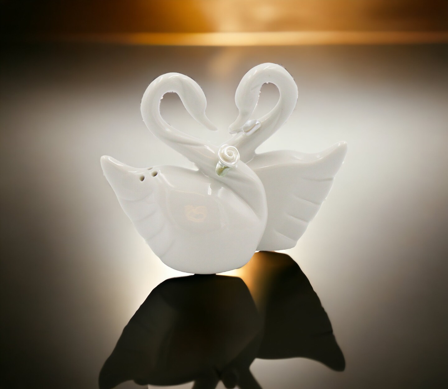 Ceramic Swan Couple Salt & Pepper Shakers, Wedding Décor or Gift, Wedding Favor, Anniversary Décor or Gift, Home Décor, Kitchen Décor