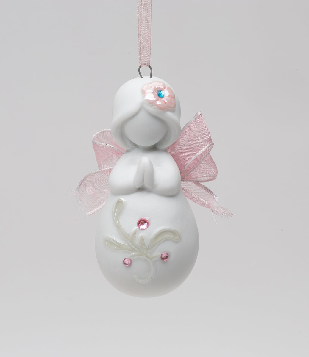 Ceramic Sweet Little Prayer Angel with Ribbon Wings Ornament, Home Décor, Religious Décor, Religious Gift, Church Décor, Baptism Gift
